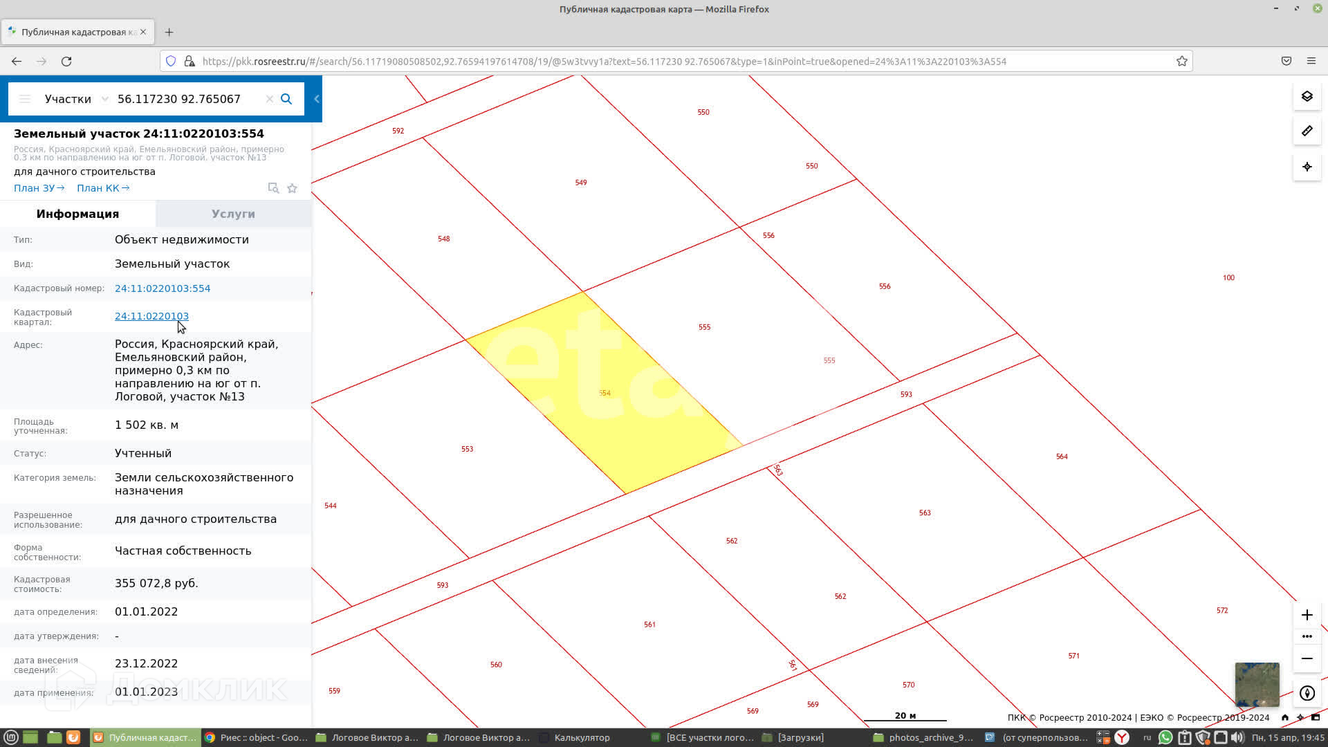 Площадь участка 15 сот.