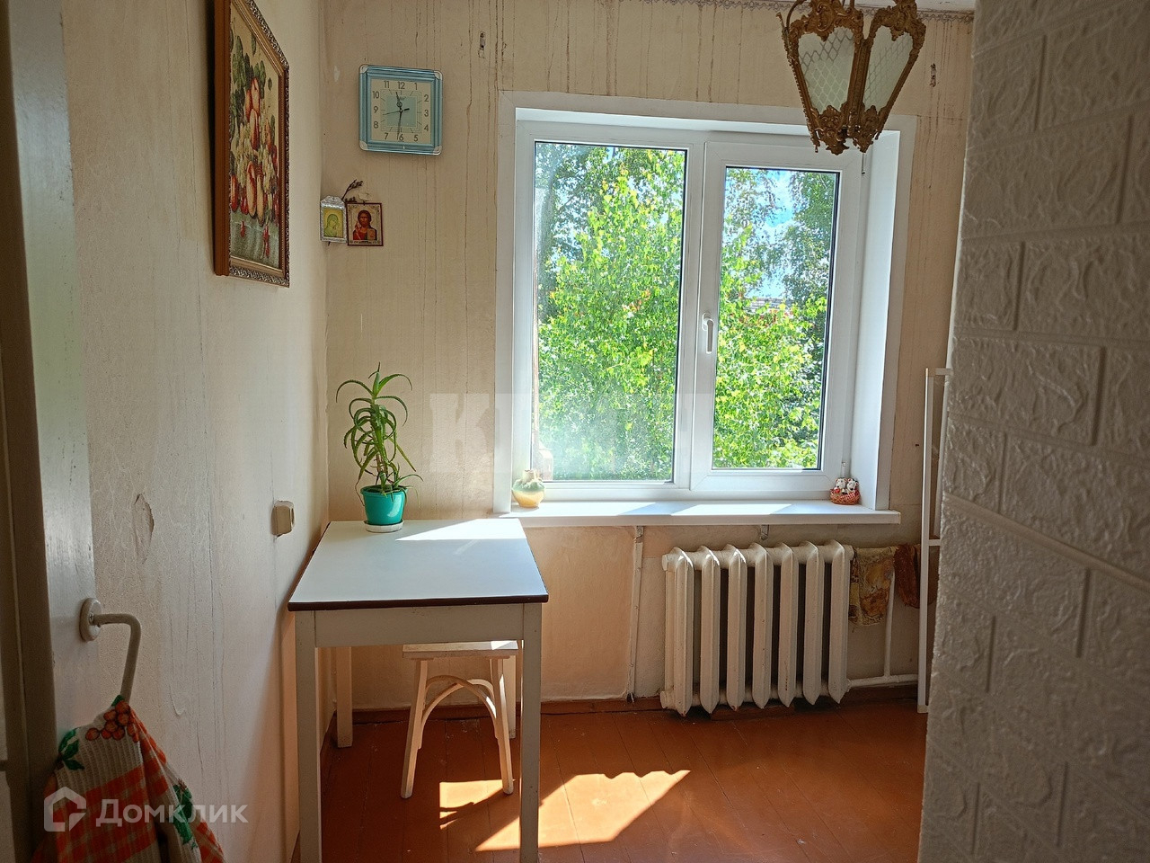 - Окно на кухне заменено на пластиковые стеклопакеты, в комнате деревянная рама.