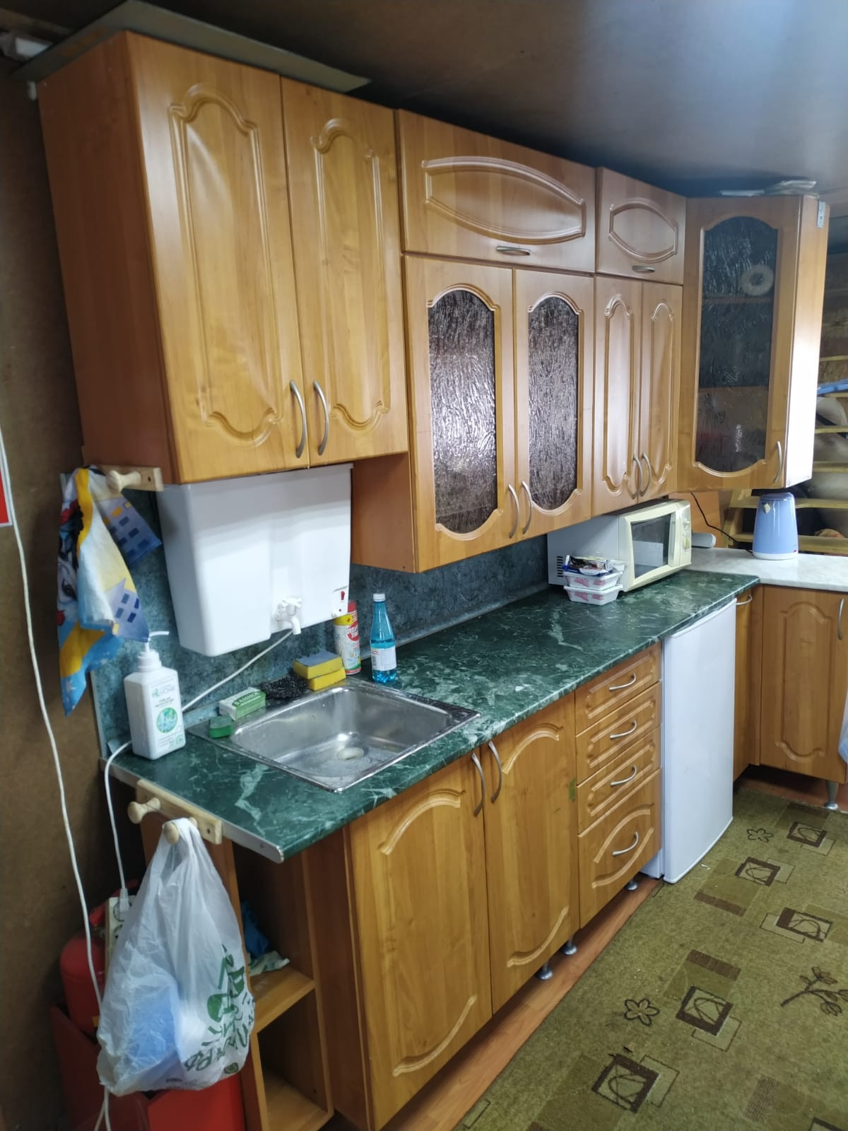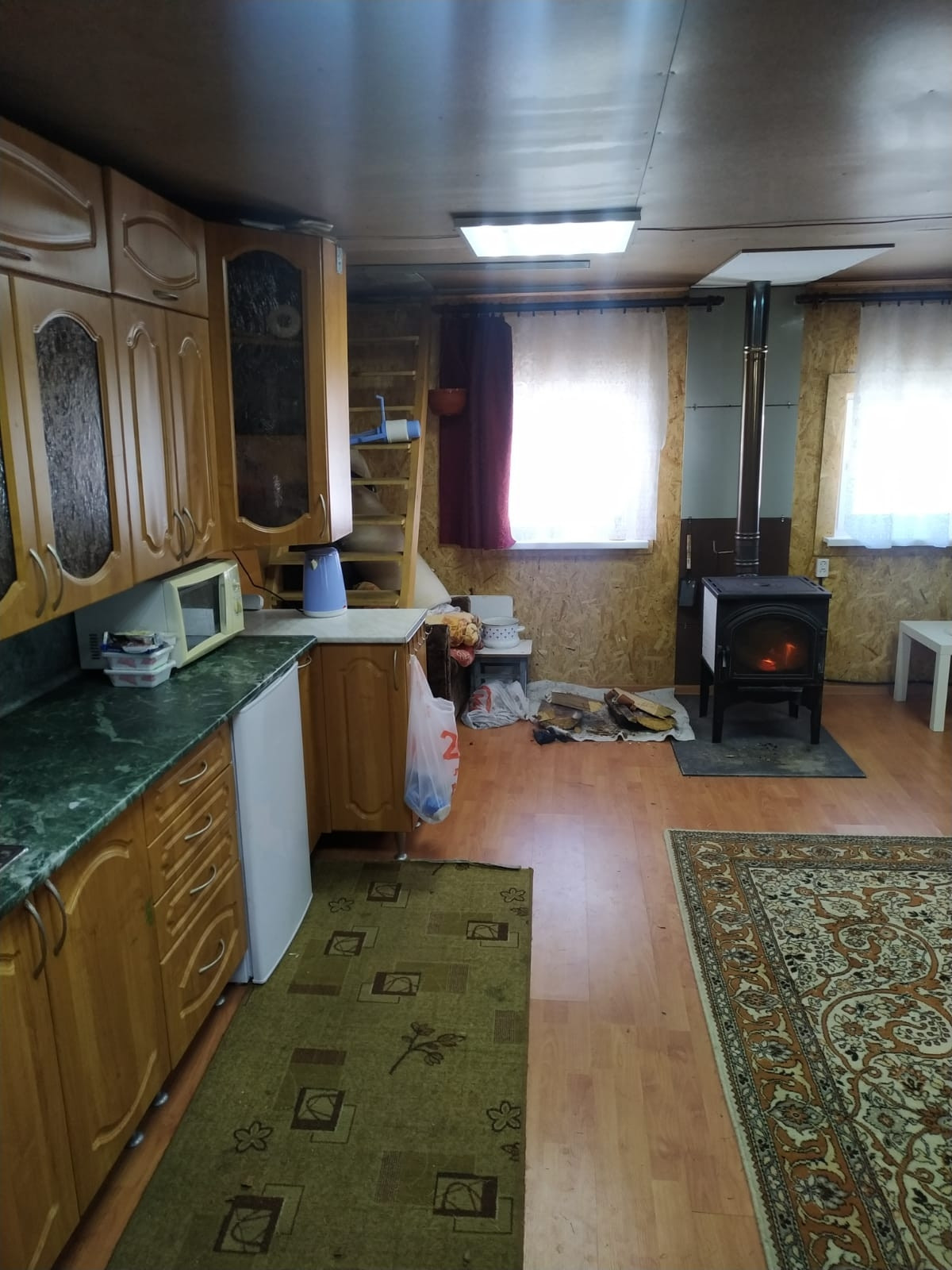 Дом 2 этажа, свет, печка буржуйка. Туалет на участке, баня, сарай, гараж, свой пруд - тех вода, вода питьевая - родник рядом с домом.