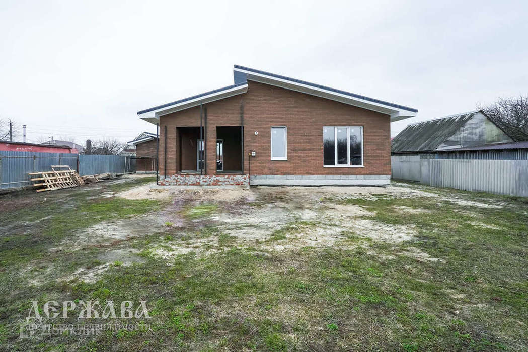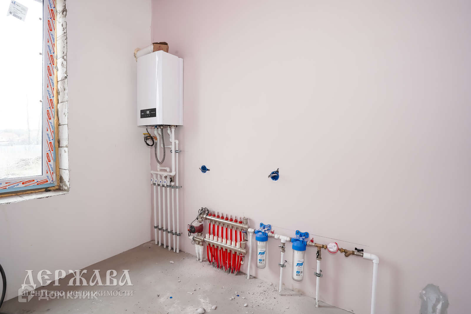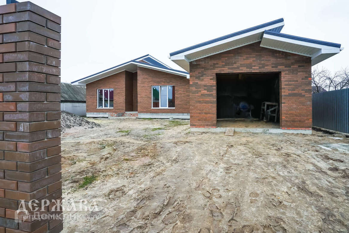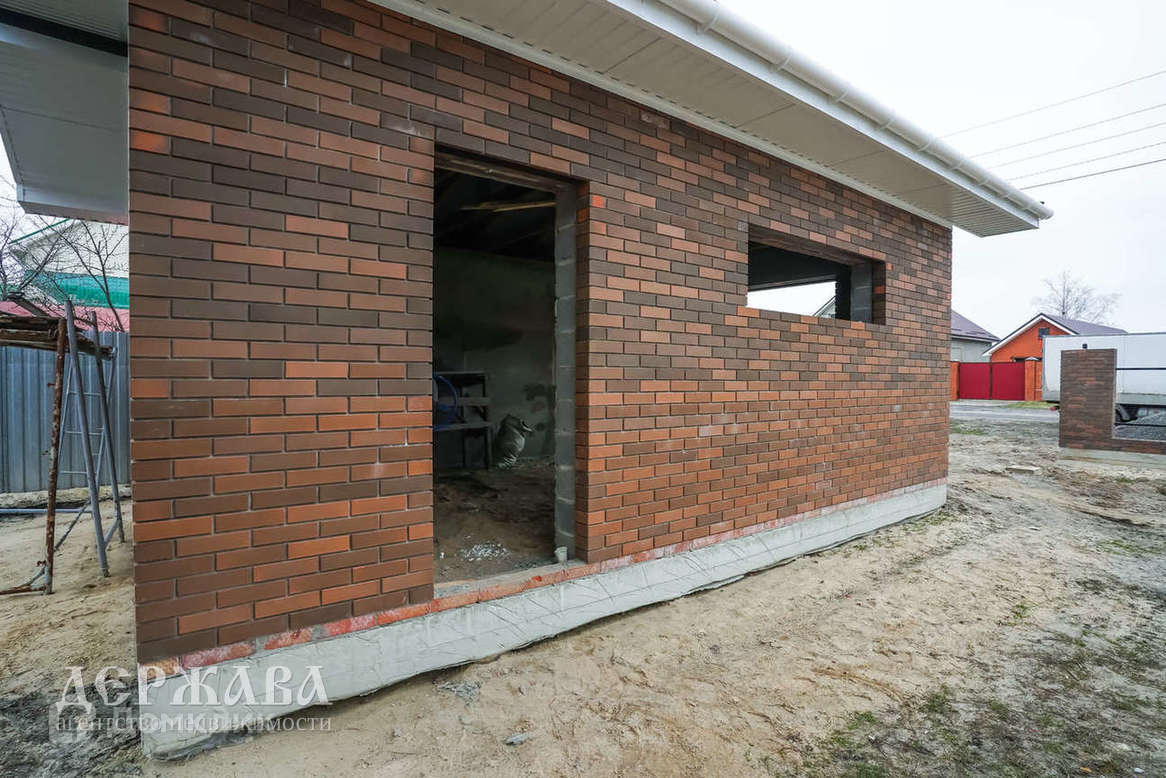 Окна -тройное остекление, отмостка по периметру дома; крыльцо перед домом с навесом, терраса с выходом из кухни-гостиной; внутри под финишную отделку: смонтирована система тёплых полов по всему дому и на террасе + радиаторы, чистовая стяжка пола, стены подготовлены под поклейку обоев, установлен двухконтурный котёл.
