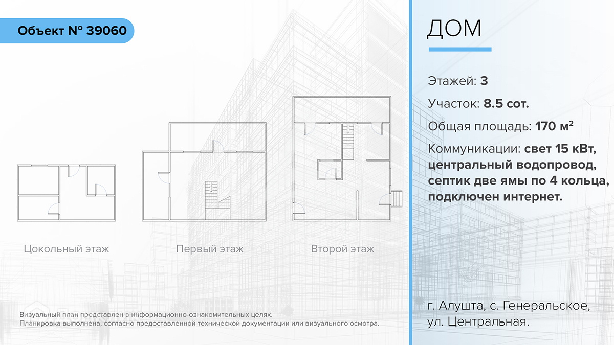 Продается дом в городе Алушта, село Генеральское, улица Центральная. Общая площадь дома 170 кв.м. Общая площадь земельного участка: 8,5 соток.