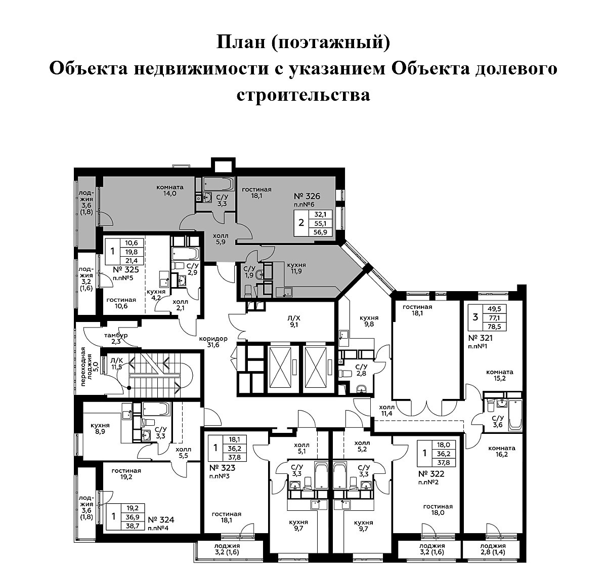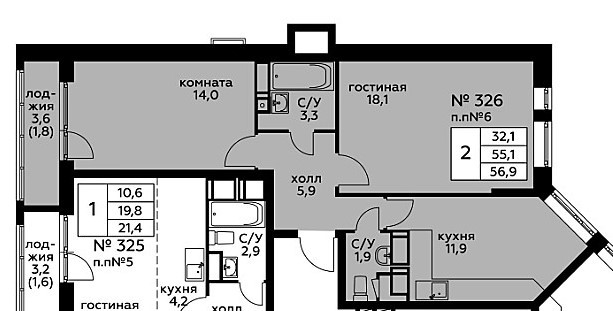 Общая площадь 56.9 м2