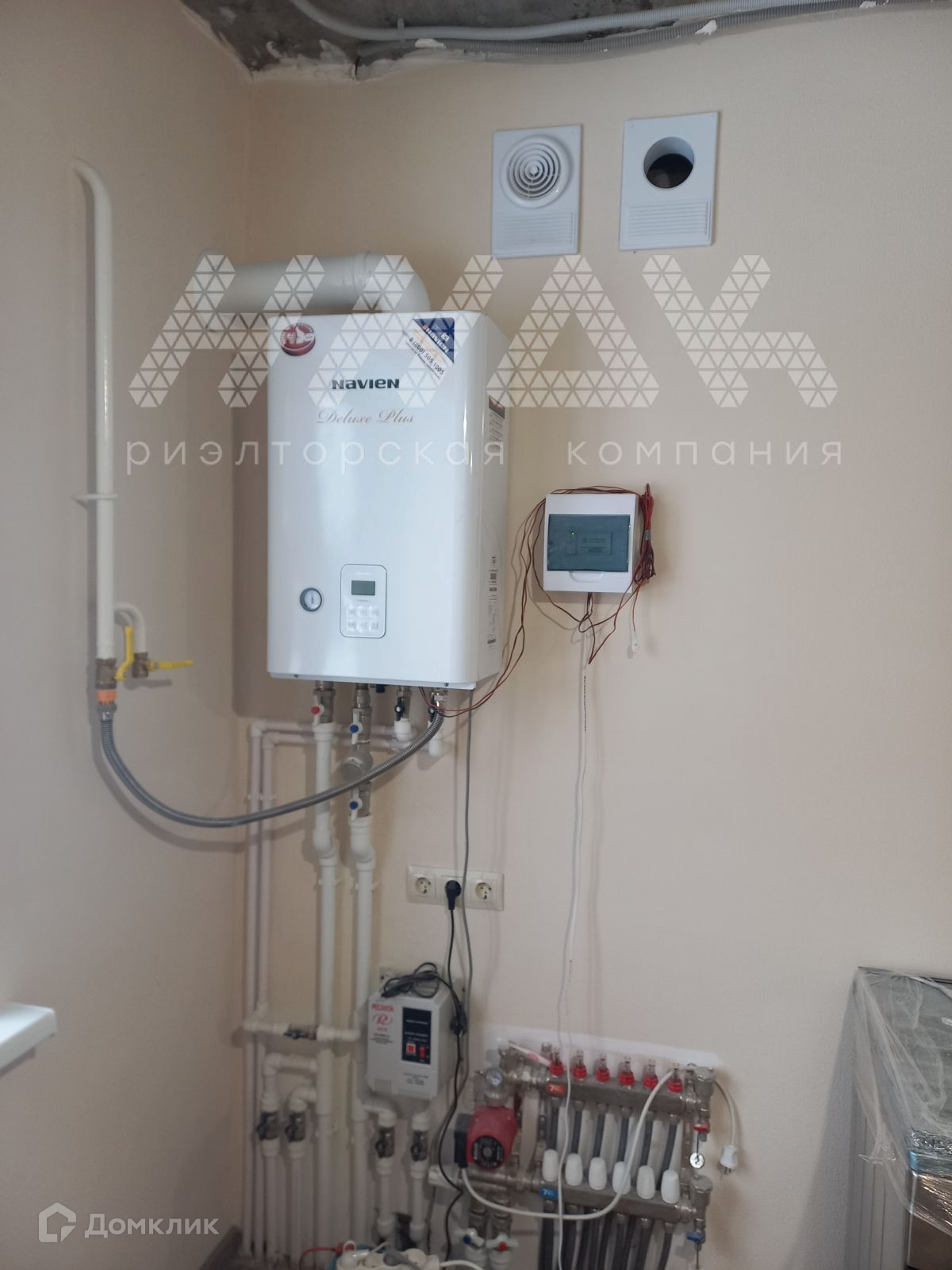 Дом газифицирован, горячая вода и отопление от двухконтурного газового котла, с возможностью регулирования температуры по зонам, удаленно. В настоящий момент водоснабжение от скважины. Труба для водопровода заведена в дом, но не подключена к центральному водопроводу. Канализация - сэптик.