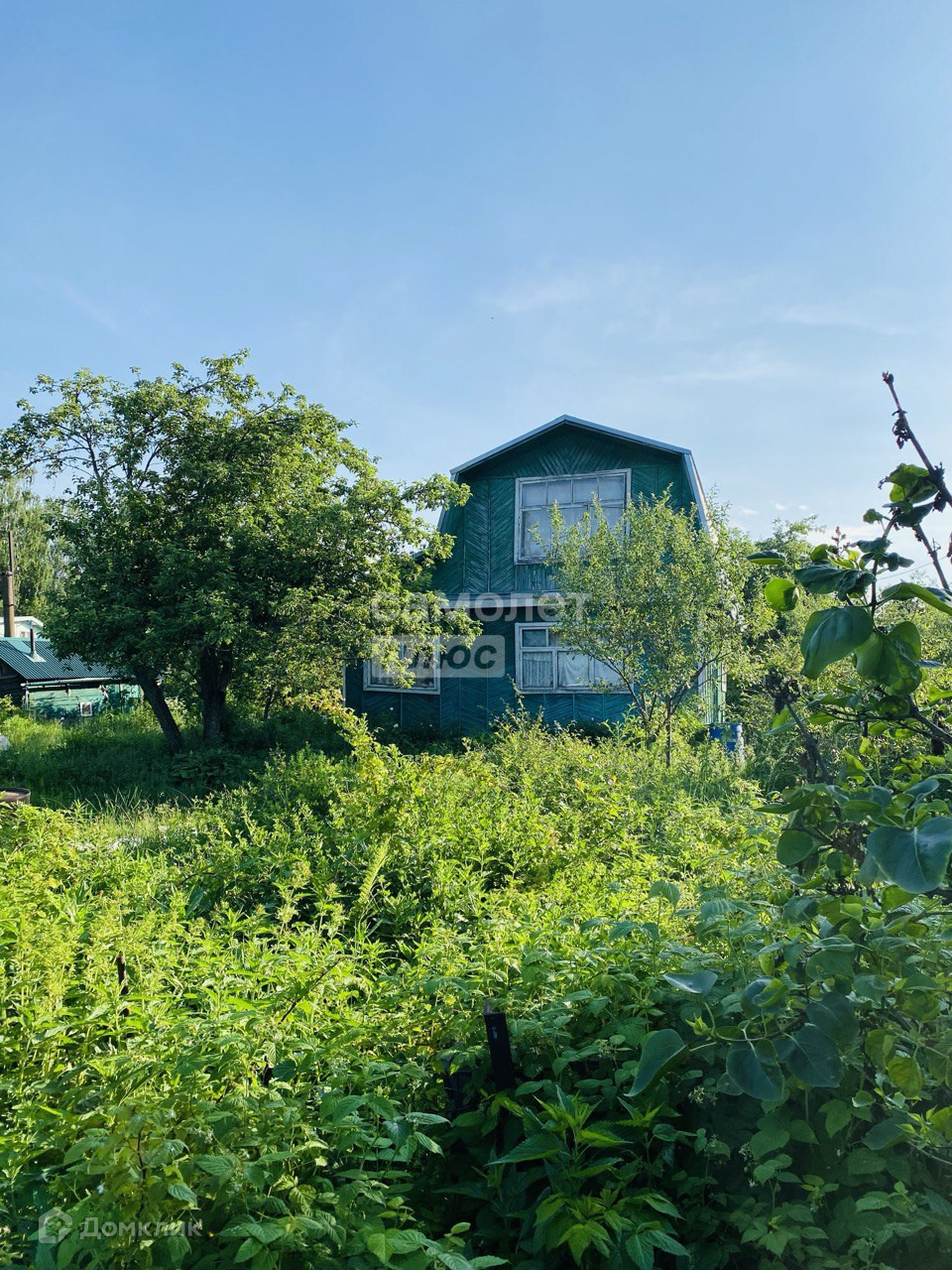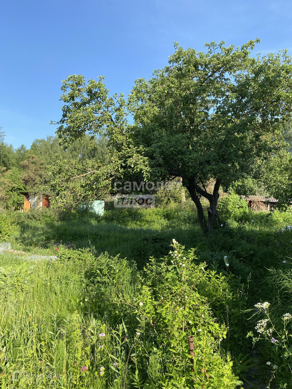 Участок ровный квадрат 6,8 соток . На участке плодово- ягодные насаждения ( малина , смородина крыжовник ) , яблоня .