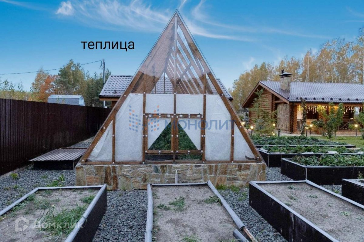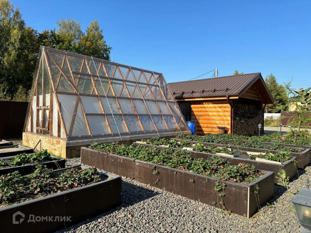 На территории расположены баня с террасой, хозблок, теплица.