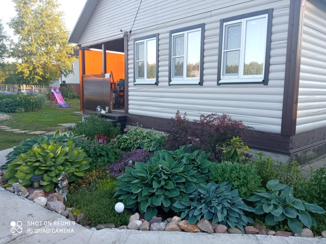 На территории расположен розарий на 60 кустов ,( сорта флорибунды и чайно-гибридные)