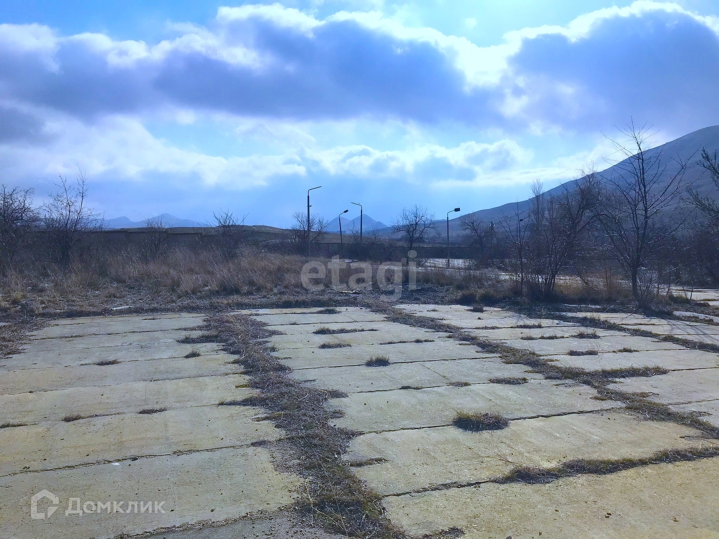 Площадка и дорога между помещениями из бетонных дорожных плит.