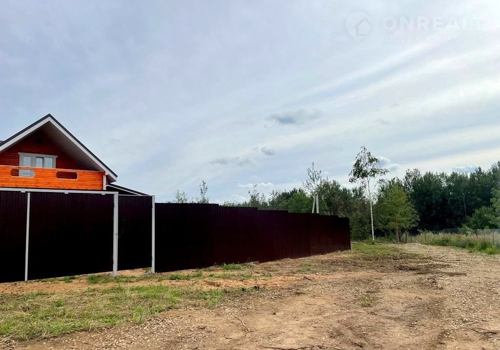 Аккуратный участок 10 сот с природным луговым ландшафтом, огорожен сплошным забором из профнастила.