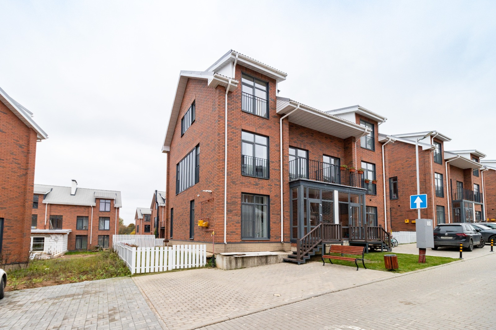 Участок: площадь 2,6 соток, парковка на 3 автомобиля, крыльцо. Поселок охраняется. Поселок жилой, его обслуживает штат полноценной команды из сантехников, электриков и т.д. Дуплекс находится в коттеджном поселке "Зеленоградский", в 1 км от Зеленограда. Имеются спортивные и детская площадки.