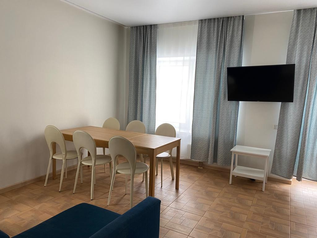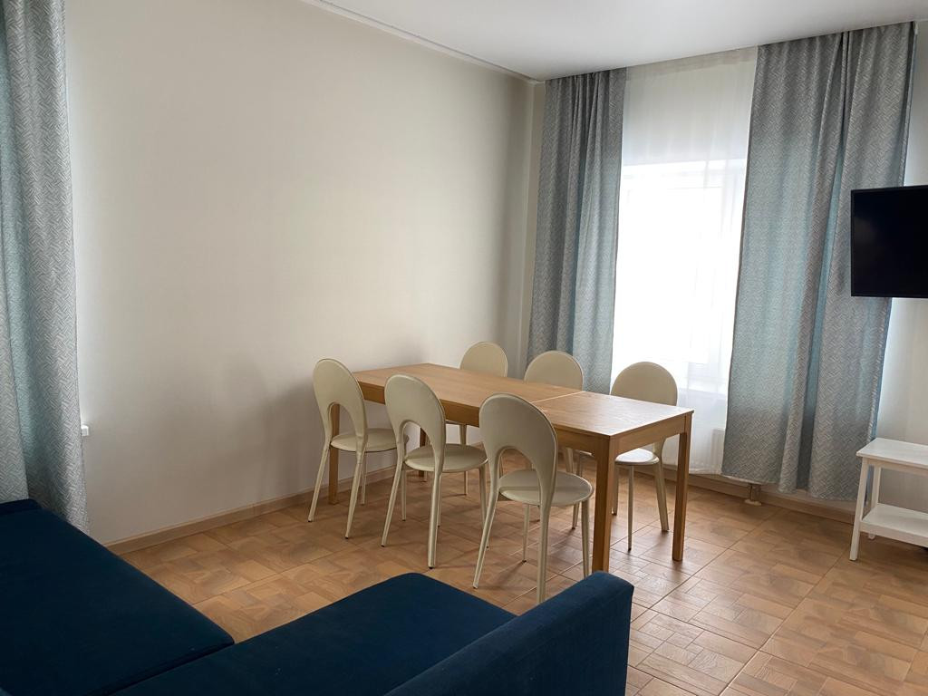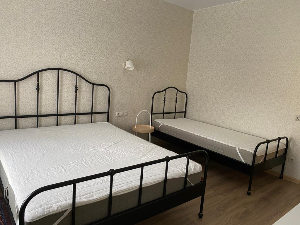 По мебели: шкафы, столы, стулья, двуспальные кровати, полностью меблировано.