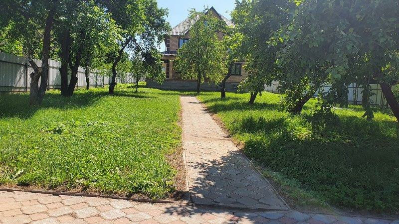 Земельный участок 18 соток правильной прямоугольной формы, огорожен забором из профлиста на ленточном фундаменте, имеются дорожки из брусчатки, плодовые деревья.