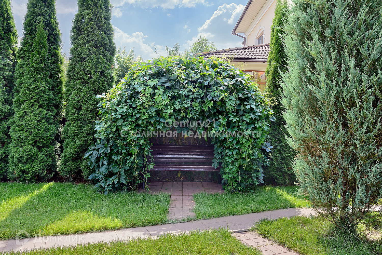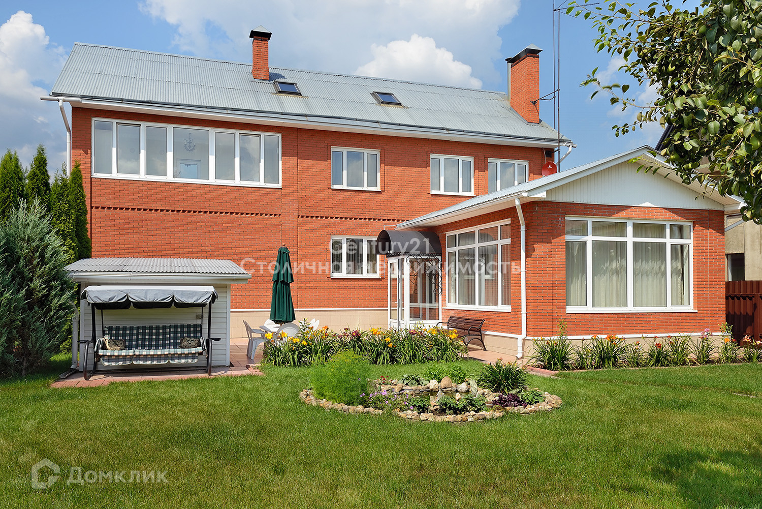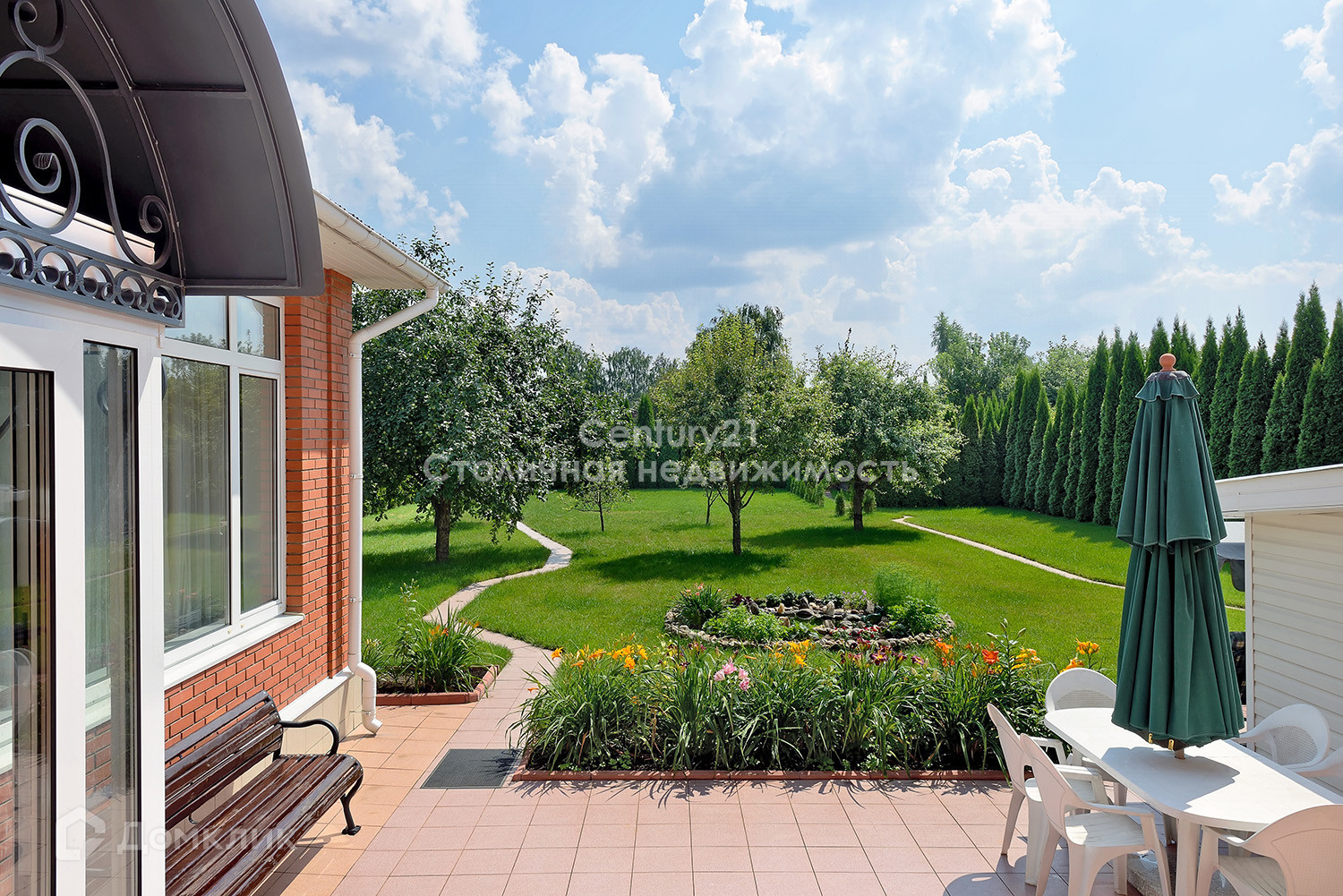 На участке: плодоносящий яблоневый сад. хвойники. живая изгородь из туй. можжевельник. шикарный Немецкий газон. множество зон отдыха - беседки, обеденная зона под зонтом, лавочки по всей территории уютно окутанные цветниками. прогулочные дорожки.