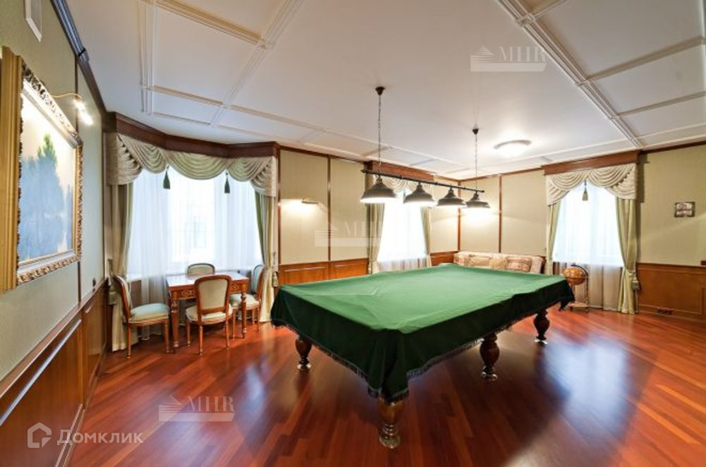 1 этаж: холл, кабинет, гостевая спальня с индивидуальной ванной комнатой (подогреваемый пол), бильярдная, гостиная с камином и зимним садом, имеющим два выхода на участок, гостевой с/у, кухня-столовая с запасным входом из гаража и комнатой для хранения кухонной утвари.