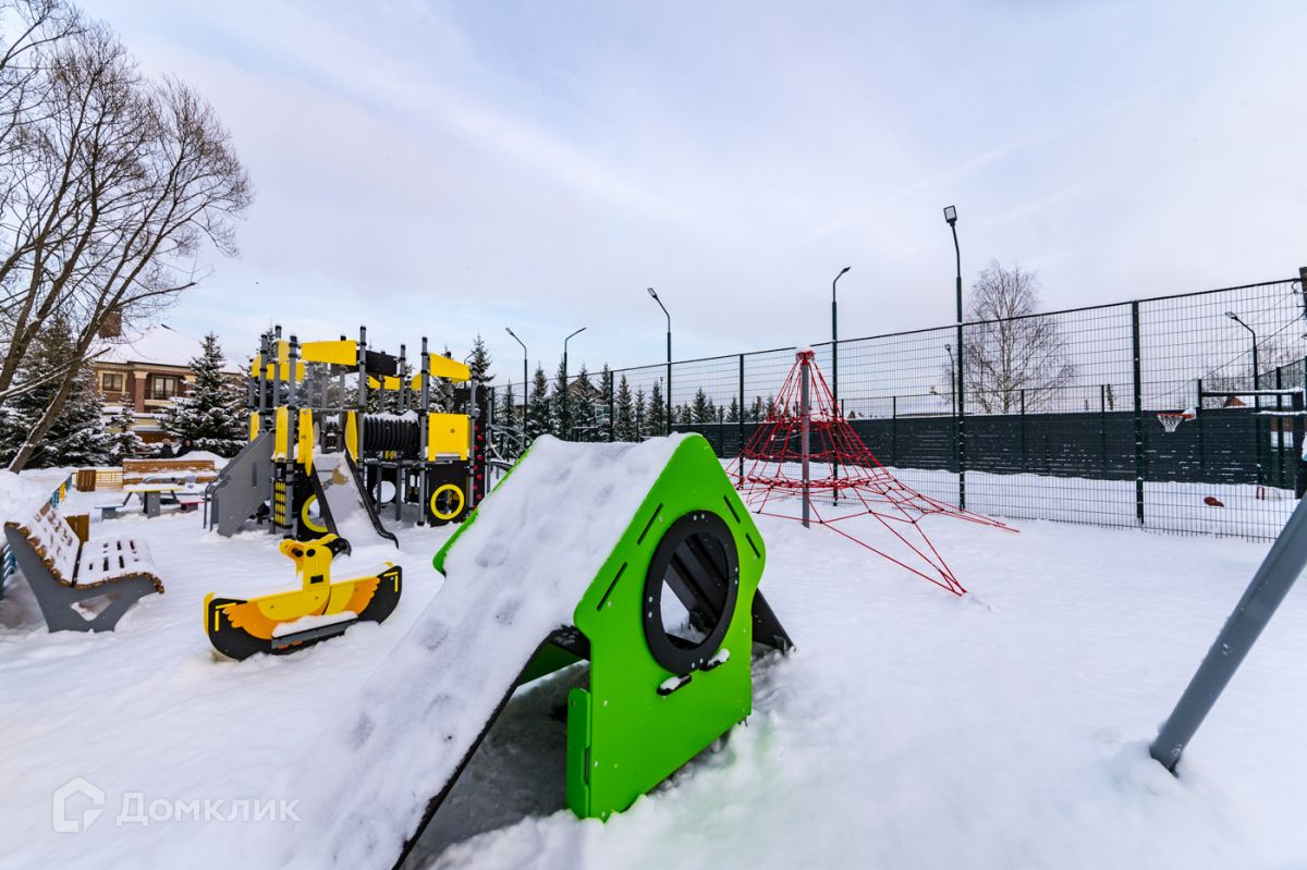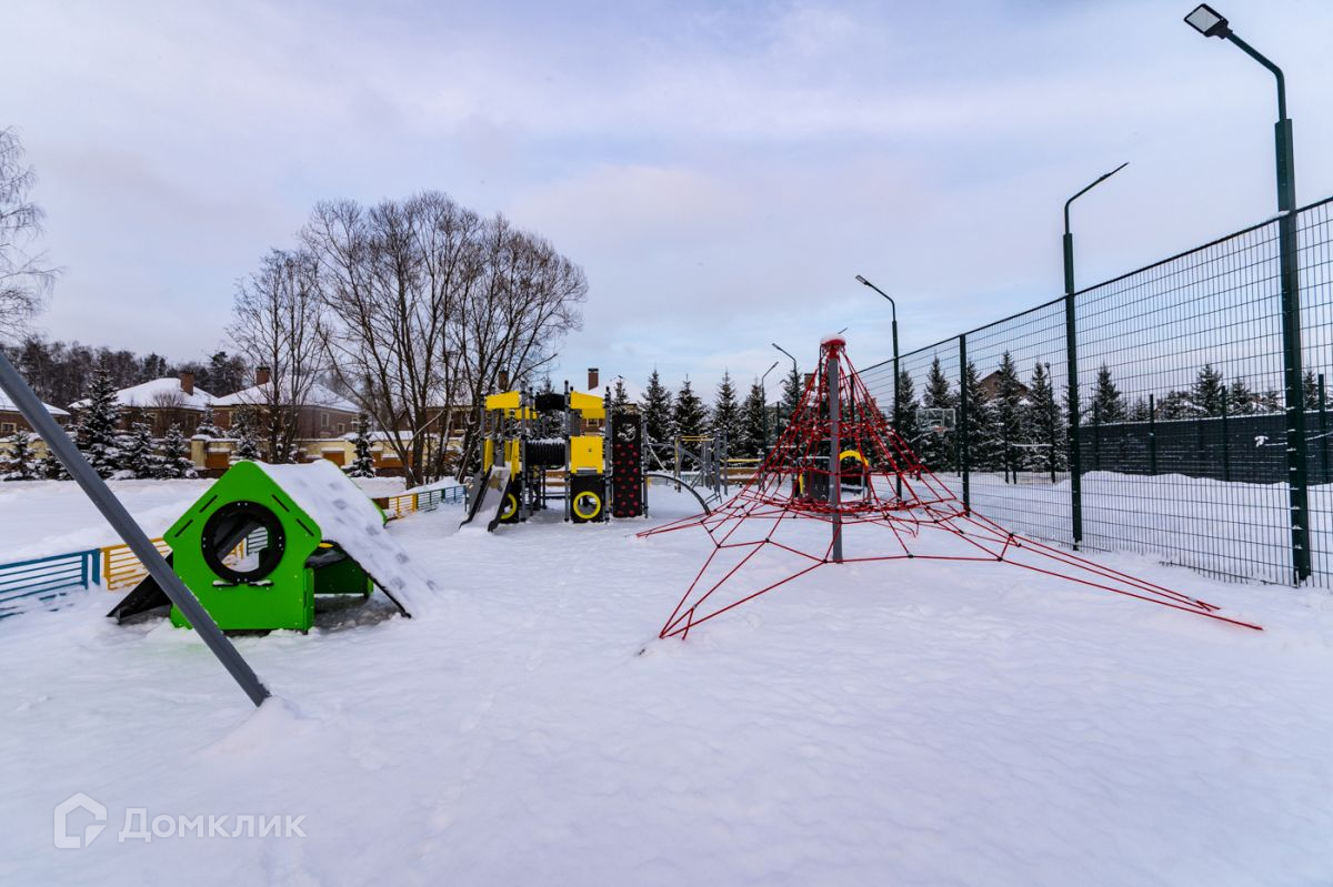 На благоустроенной зеленой территории поселка функционирует все, что нужно для комфортного проживания за городом-детские и спортивные площадки, озеро, прогулочные зоны, выход в лес. В пешей доступности супермаркет.
