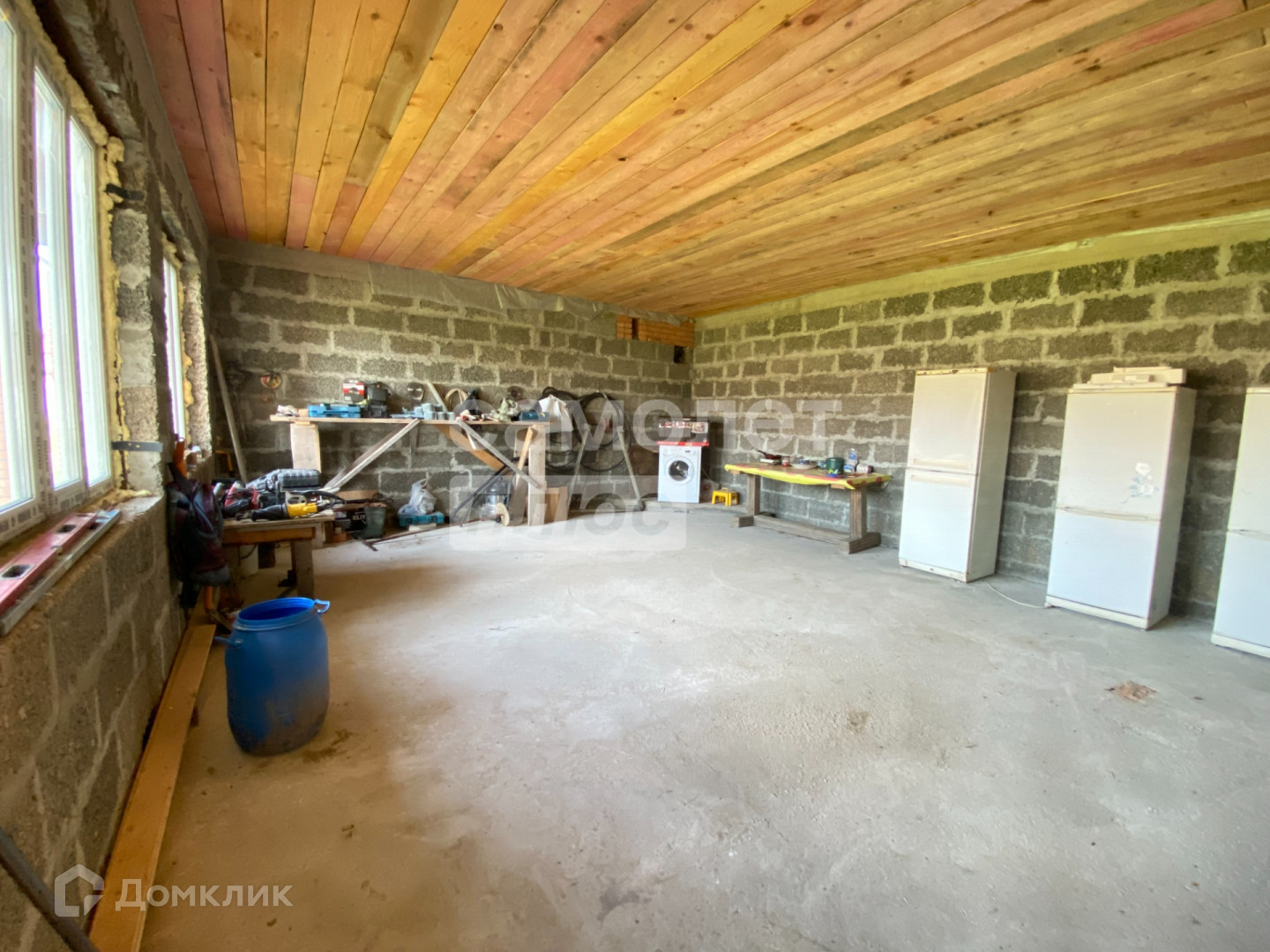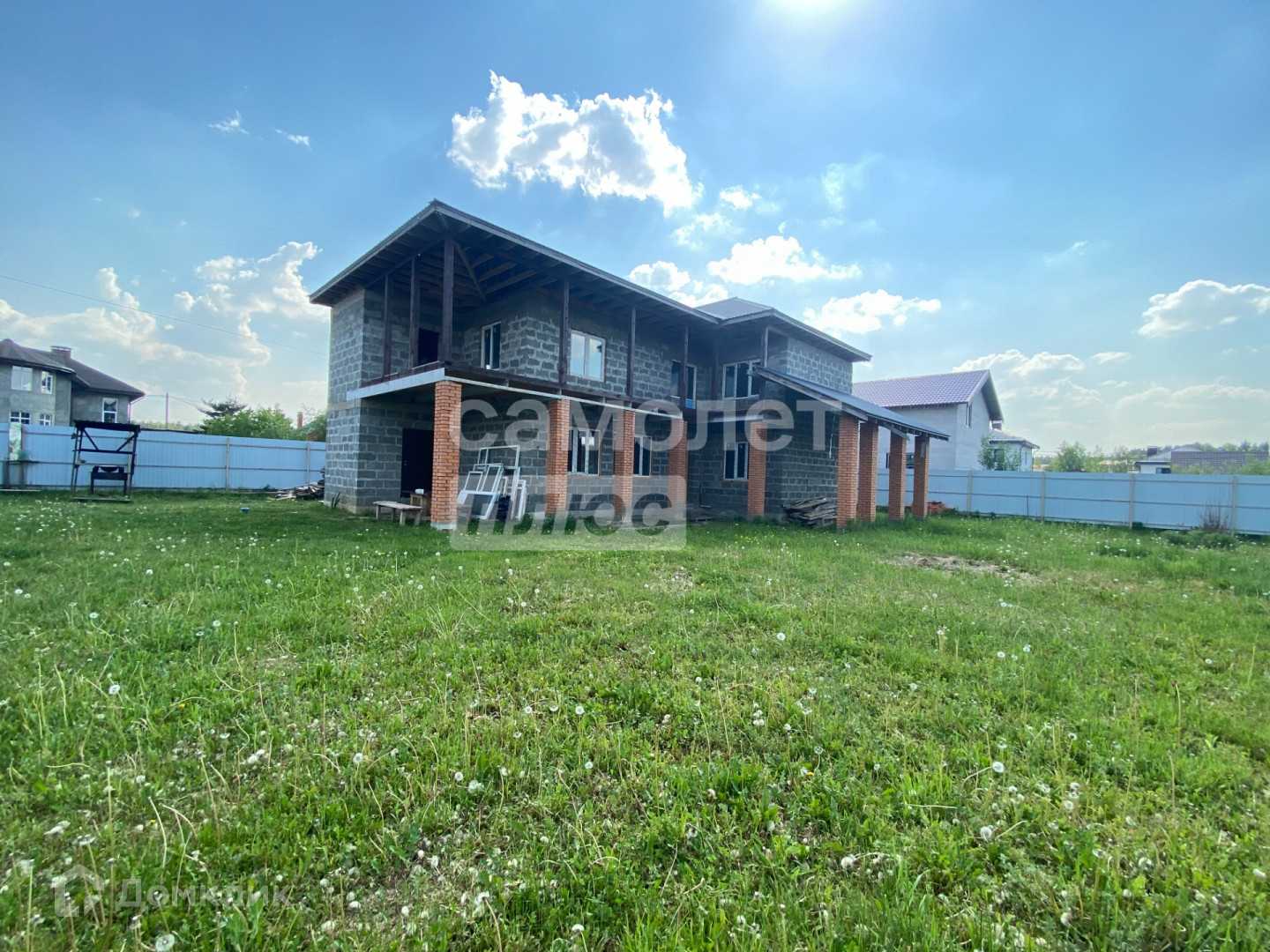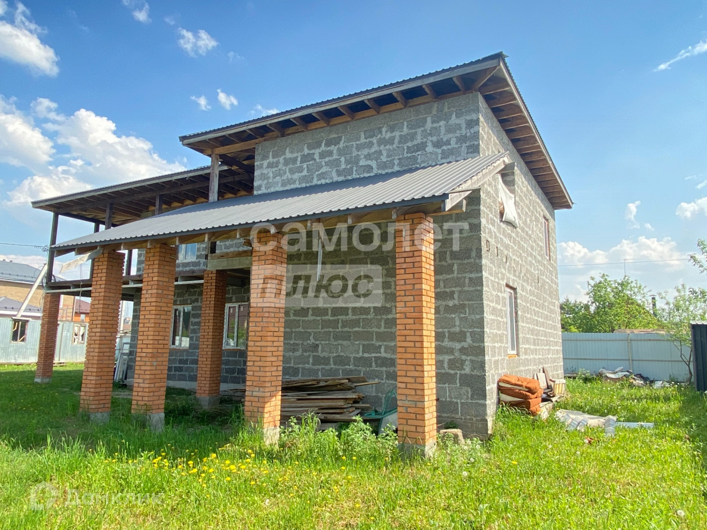 Дом 2 этажный, сделан из блоков.
