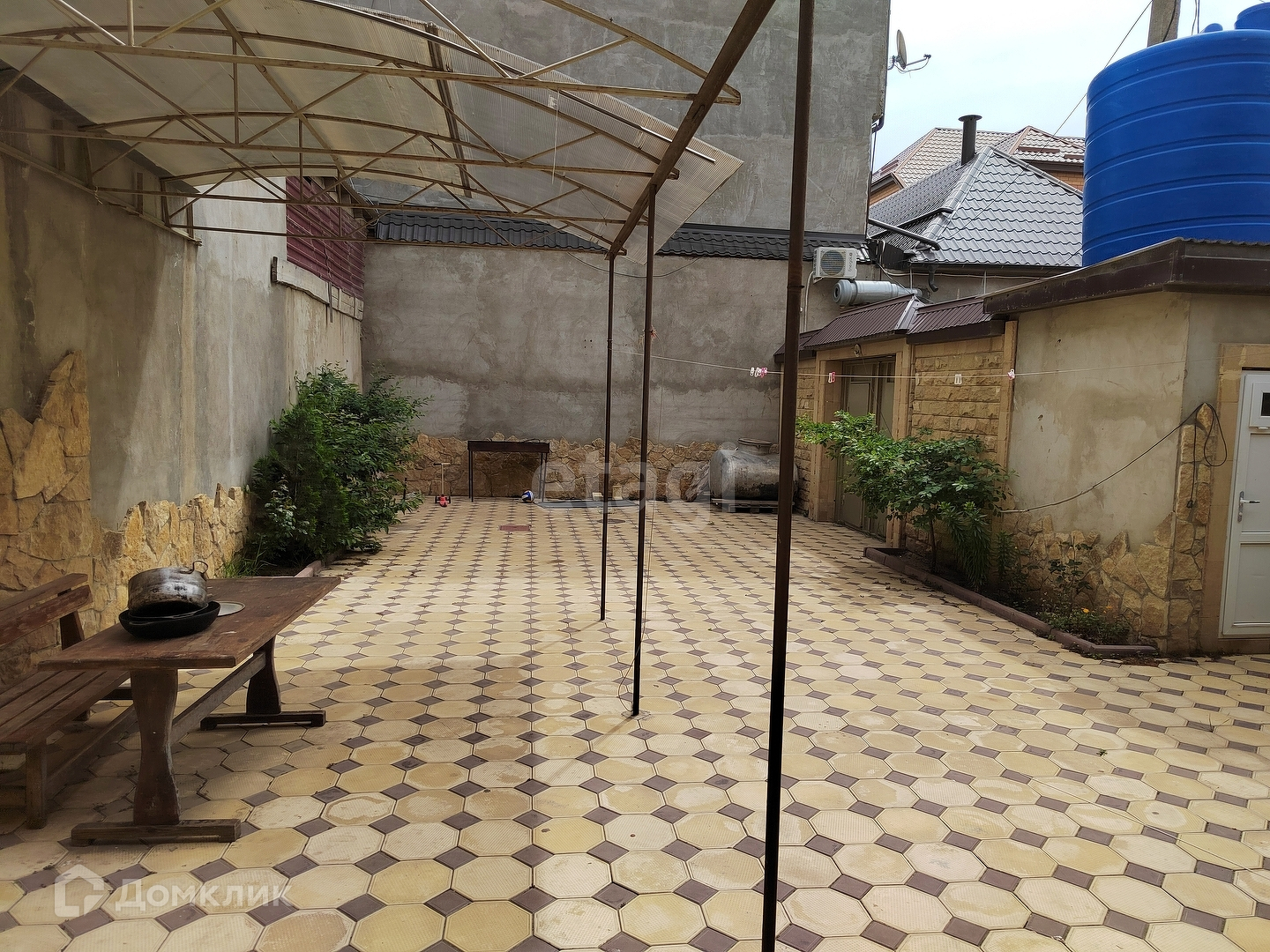 Большой просторный двор позволяет с легкостью разместить два автомобиля и останется еще место для детей. Так же во дворе есть навес, который позволит принять гостей спрятавшись от дождя. До моря от дома пешком идти 3 минуты. Чистый пляж, мало людей.