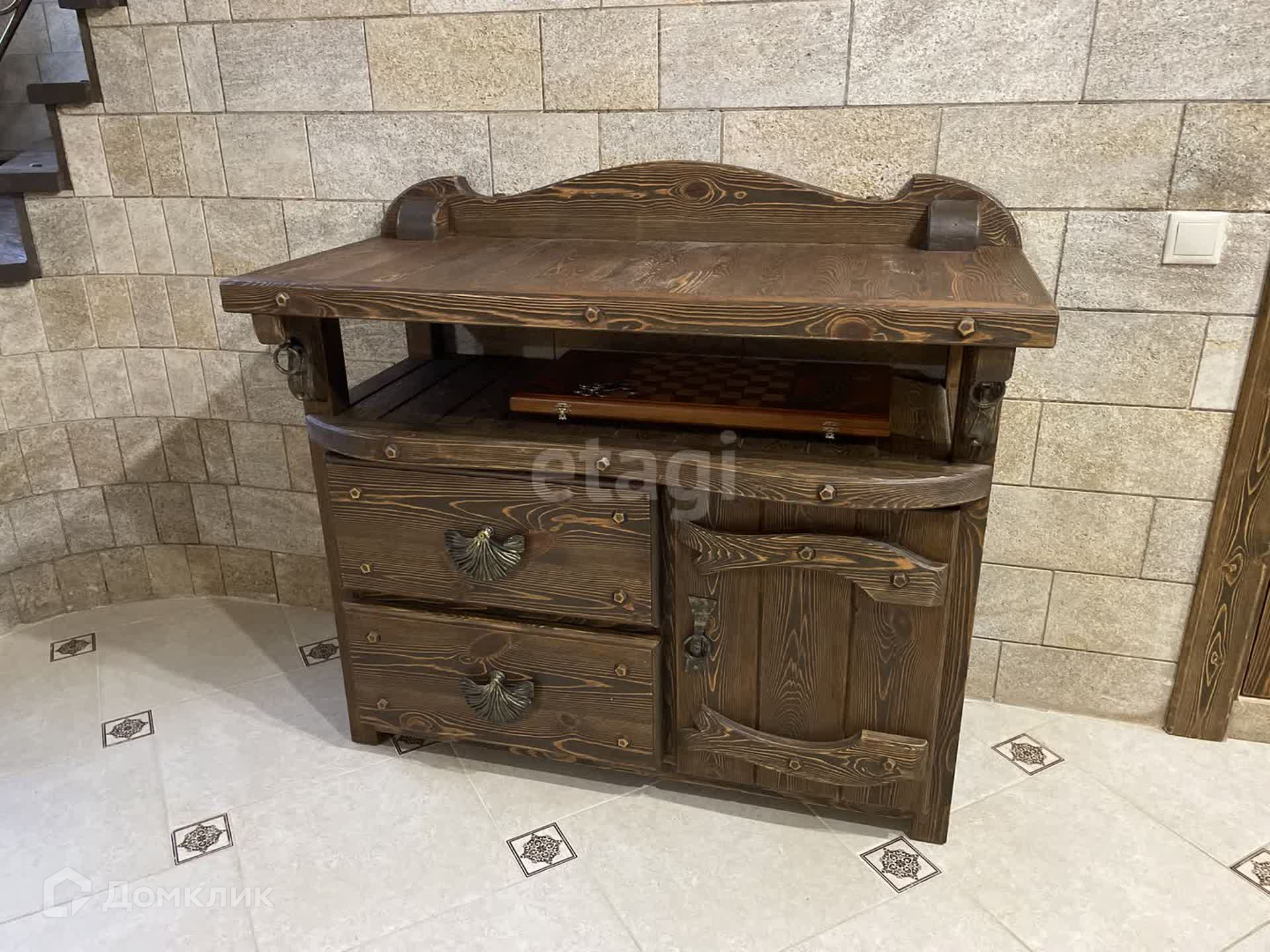 У дома свой уникальный дизайн. Видно на фото. Весь ремонт сделан с иголочки, ни одного недоделанного уголка. Вся мебель ручной работы. Качественные окна. В интерьере очень много красивых, сложных, интересных деталей. Красивая деревянная лестница с кованными перилами.