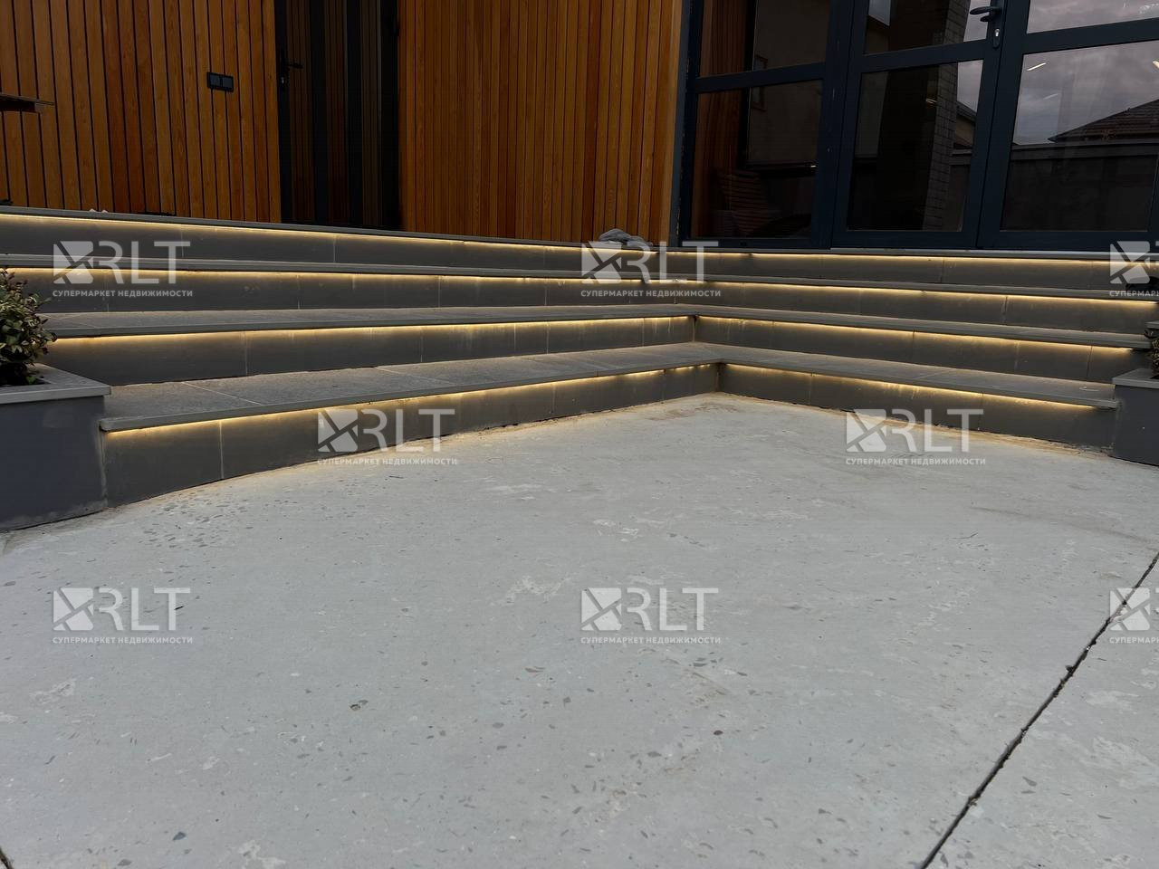 Так же освещение внедрено в лестницы , и по периметру забора, а так же с уличной стороны. На дверях стоит домофон.
