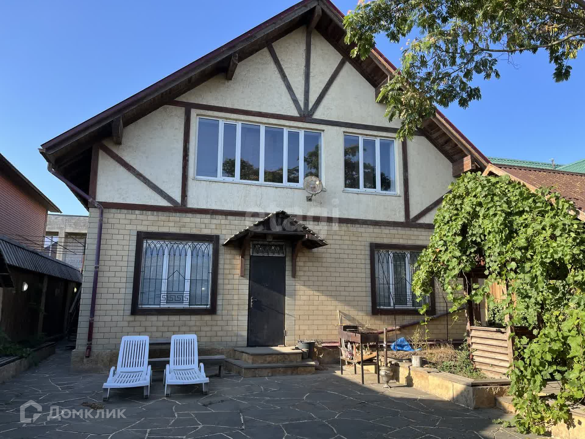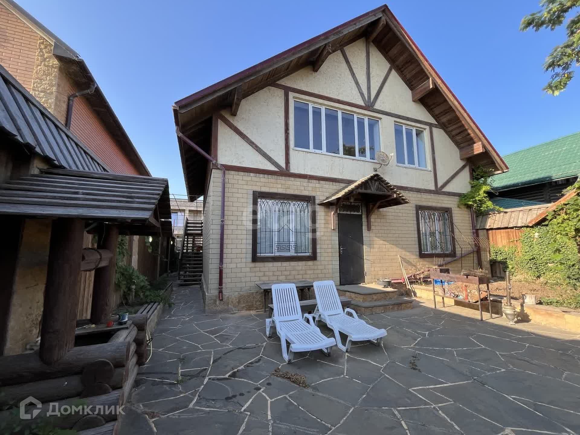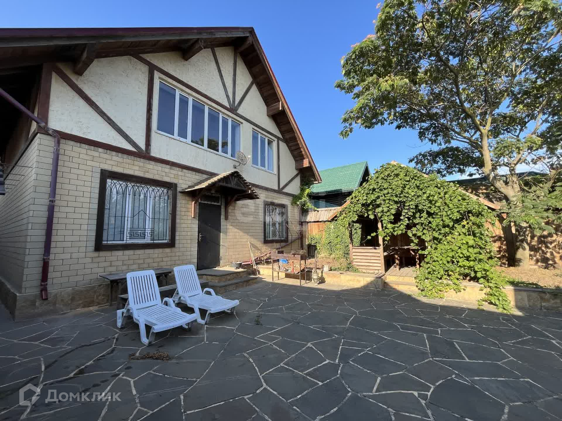 Дом двухэтажный с террасой на втором этаже с прямым видом на море. На первом этаже зал с кухней, спальня, детская, санузел. На втором этаже Зал, кухня, комната, санузел. Во дворе беседка, уличный санузел. До моря 100 метров.