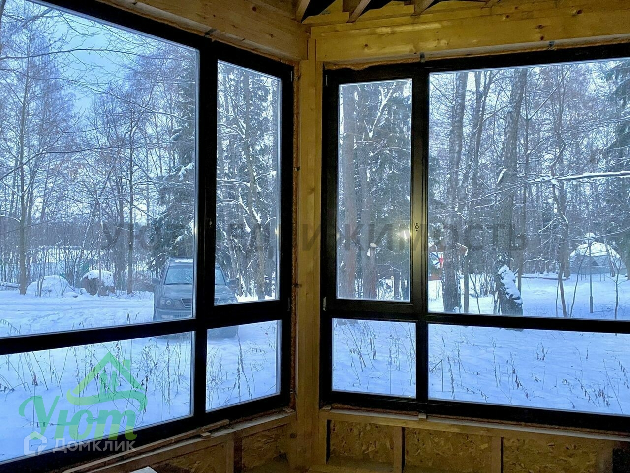Стены дома выполнены из каркаса и обшиты блокхаусом. Крыша покрыта медью. Деревянные стеклопакеты. Септик.