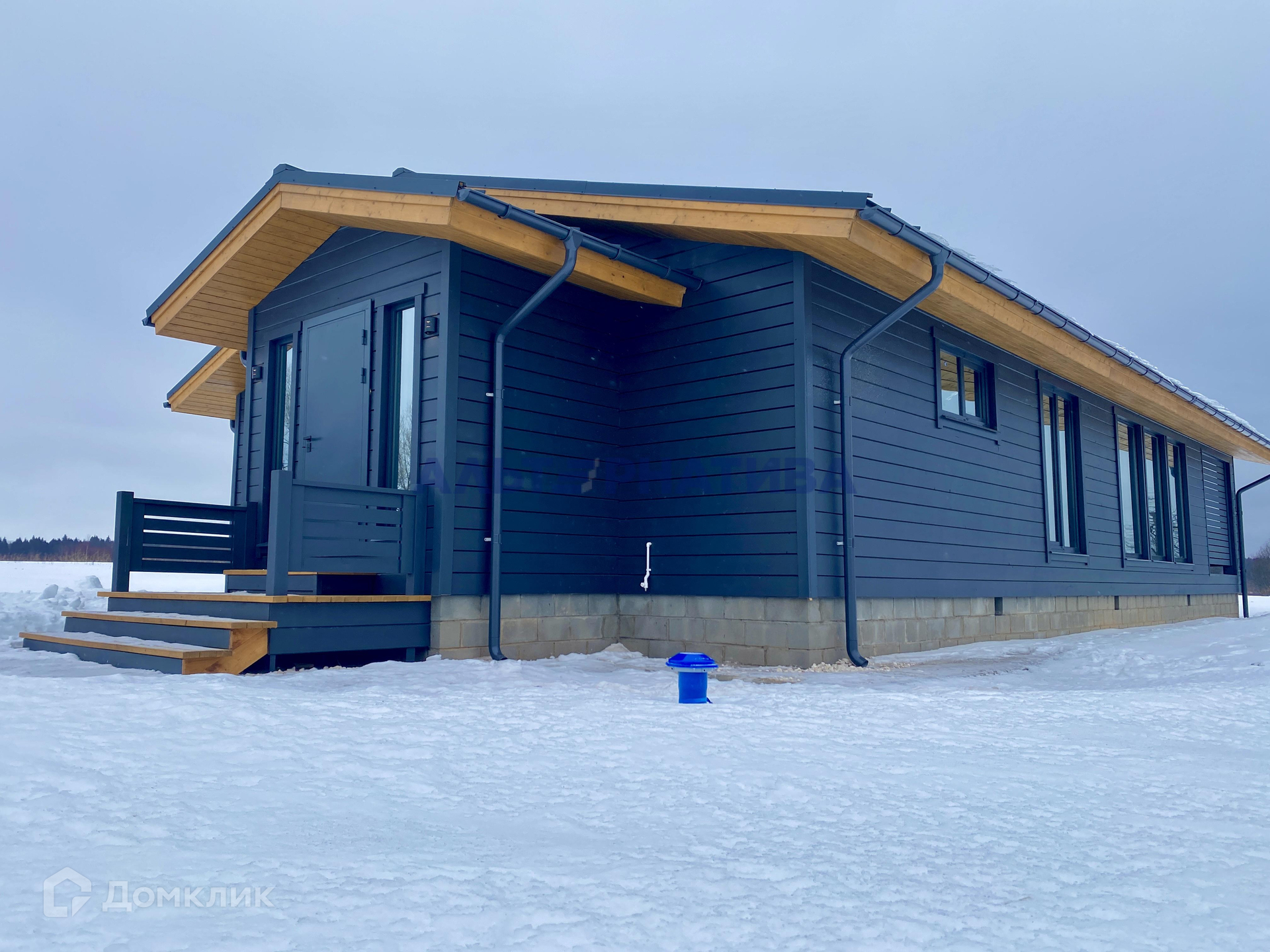 Дом построен по каркасной технологии, что обеспечивает прочность и надежность конструкции. Фундамент - ленточный, армированный с заглублением до глубины промерзания. Главный вход оборудован утепленной дверью с термо-разрывом, что помогает сохранять тепло внутри помещения и предотвращать проникновение холодного воздуха. Окна в доме выполнены по индивидуальному заказу и изготовлены с использованием двухкамерных стеклопакетов Guardian ClimaGuard. Они оснащены мультифункциональным стеклом с цветным напылением, которое отражает до 60% солнечной энергии. Кроме того, эти окна эффективно сохраняют тепло внутри помещений зимой. Внутренняя отделка дома выполнена в стиле дизайнерской клееной имитацией бруса, которая окрашена в два слоя краской "Тиккурила" цвета "Беленый дуб". Внутри помещений пол покрыт влагостойким кварц-виниловым покрытием.