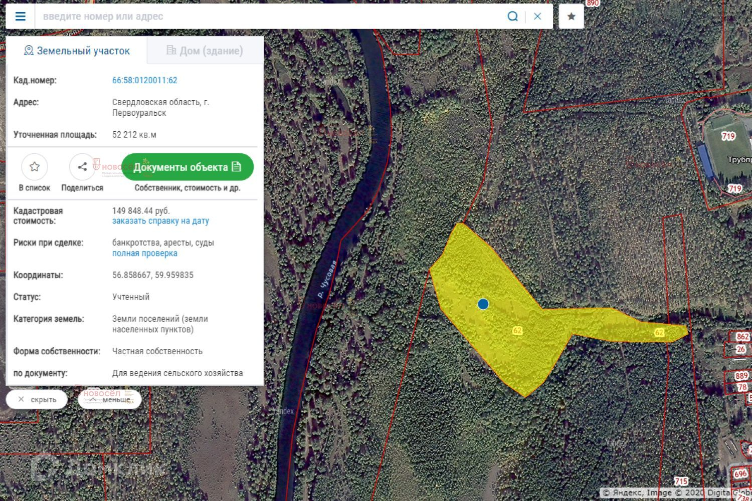 Кадастровый номер 66:58:0120011:62. Вид разрешенного использования - ведение сельского хозяйства, при необходимости можно перевести в промзону.