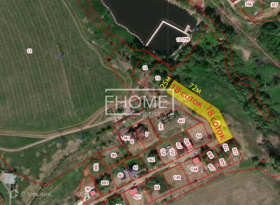 Участок вытянут вдоль дороги, состоит из двух кадастровых, размеры каждого 72х25 метров, что позволяет оптимально разместить на нем несколько домов.