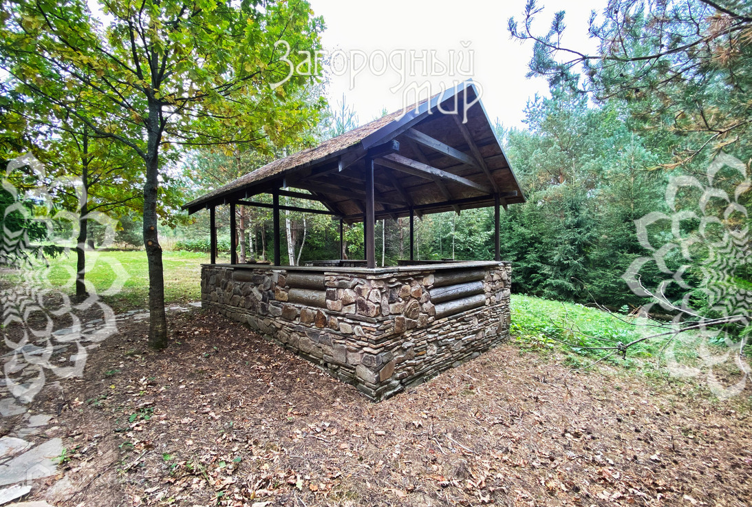 Участок 2,5 га., огорожен высоким забором: русская баня-сруб (на дровах) с комнатой для проживания, большая беседка для барбекю, костровая площадка с чугунной чашей, теннисный корт, большой пруд и декоративный прудик, детский городок и батут, несколько фонтанов и хозяйственные постройки, парковка на 8 автомашин и вертолётная площадка.