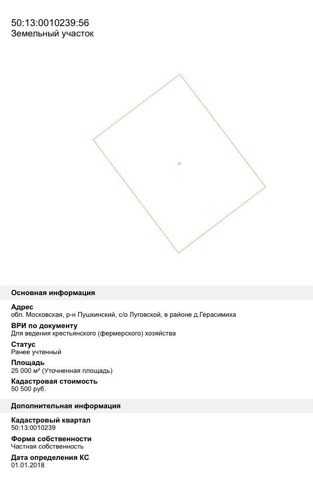 кадастровый номер Участков 50:13:0010239:56