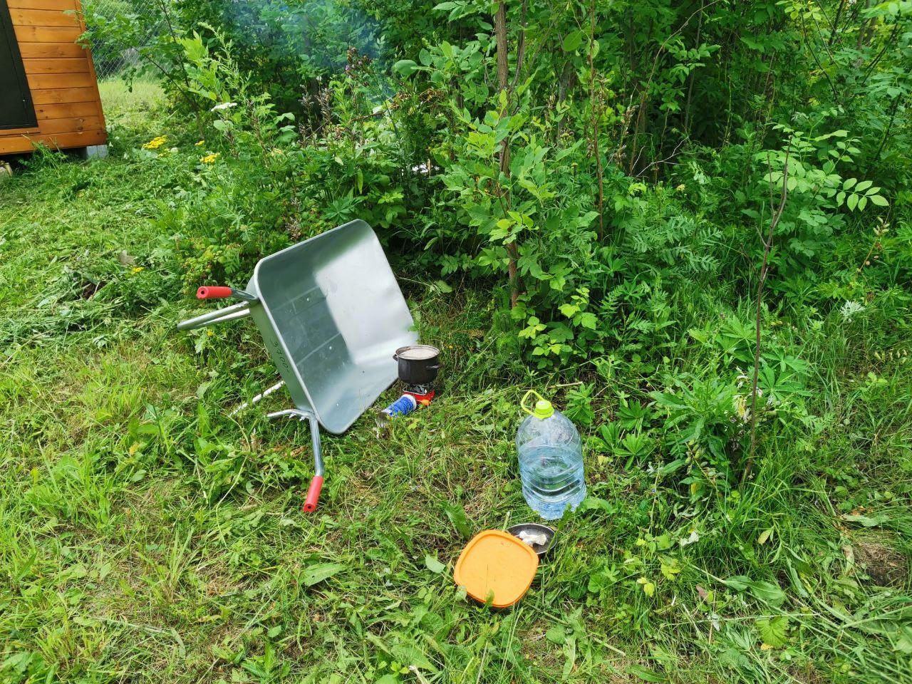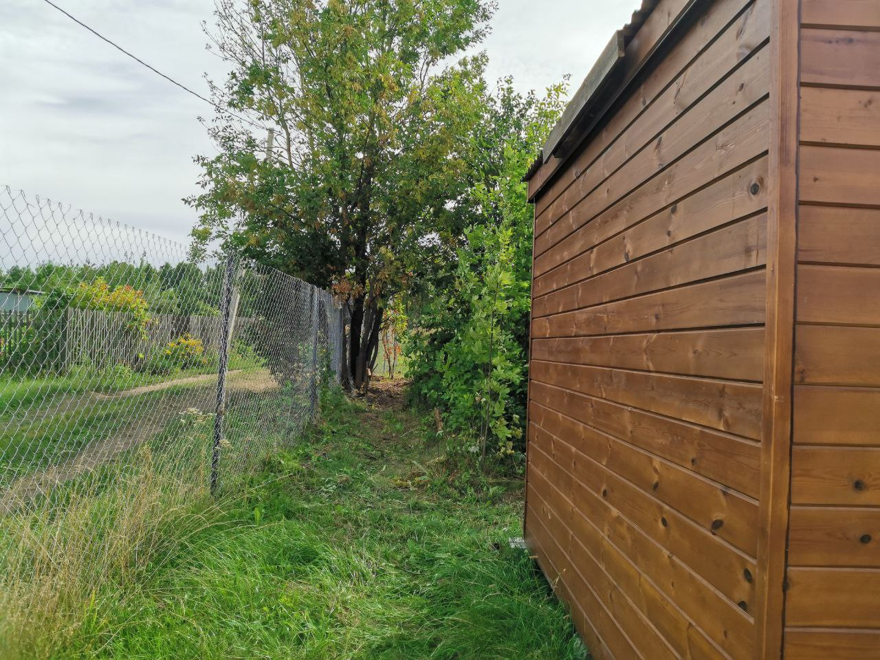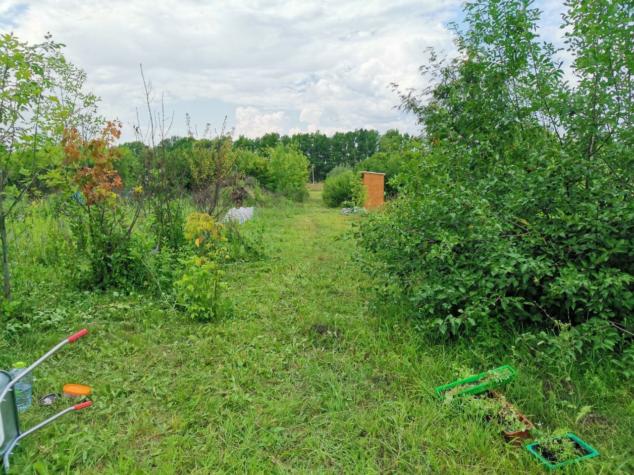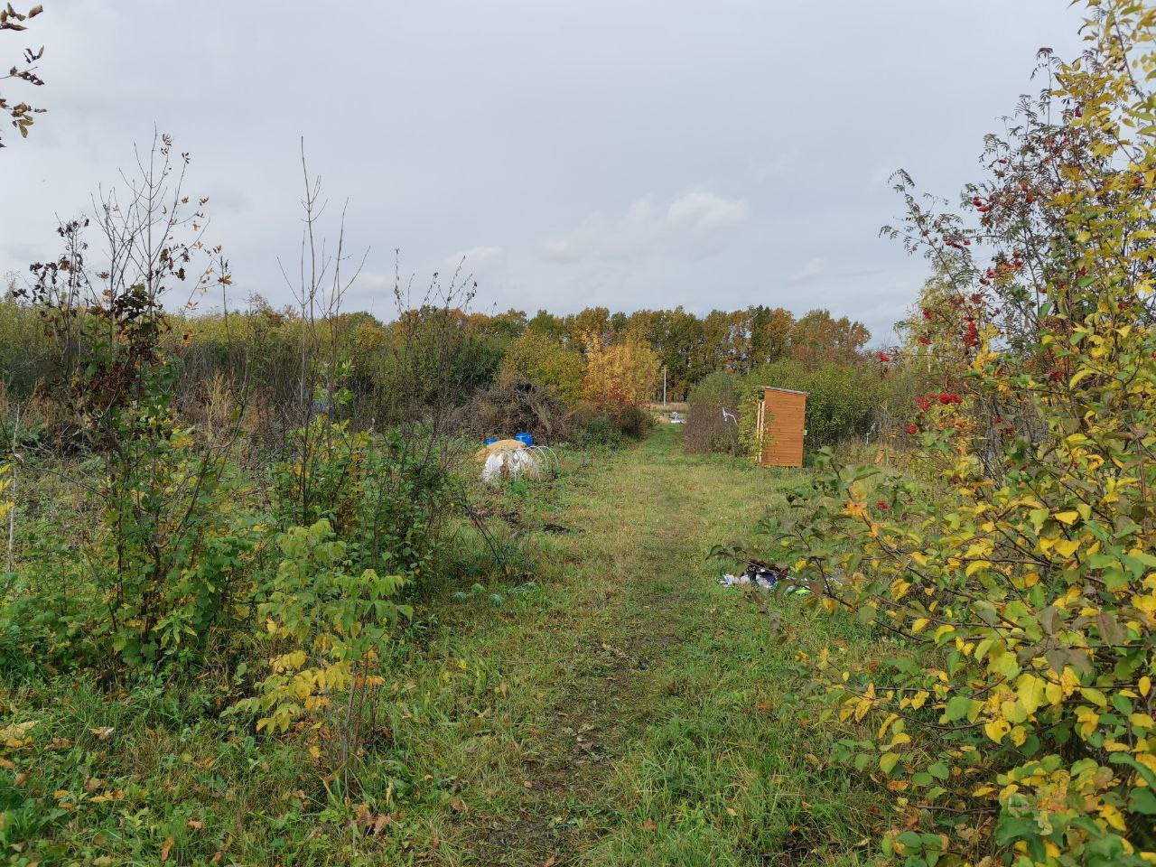 Продаю 1 большой участок, почищенный, с утепленной бытовкой и заведенным электричеством, рядом пристройка навес капитальная, уличный туалет. На участке много плодовых деревьев, малина.