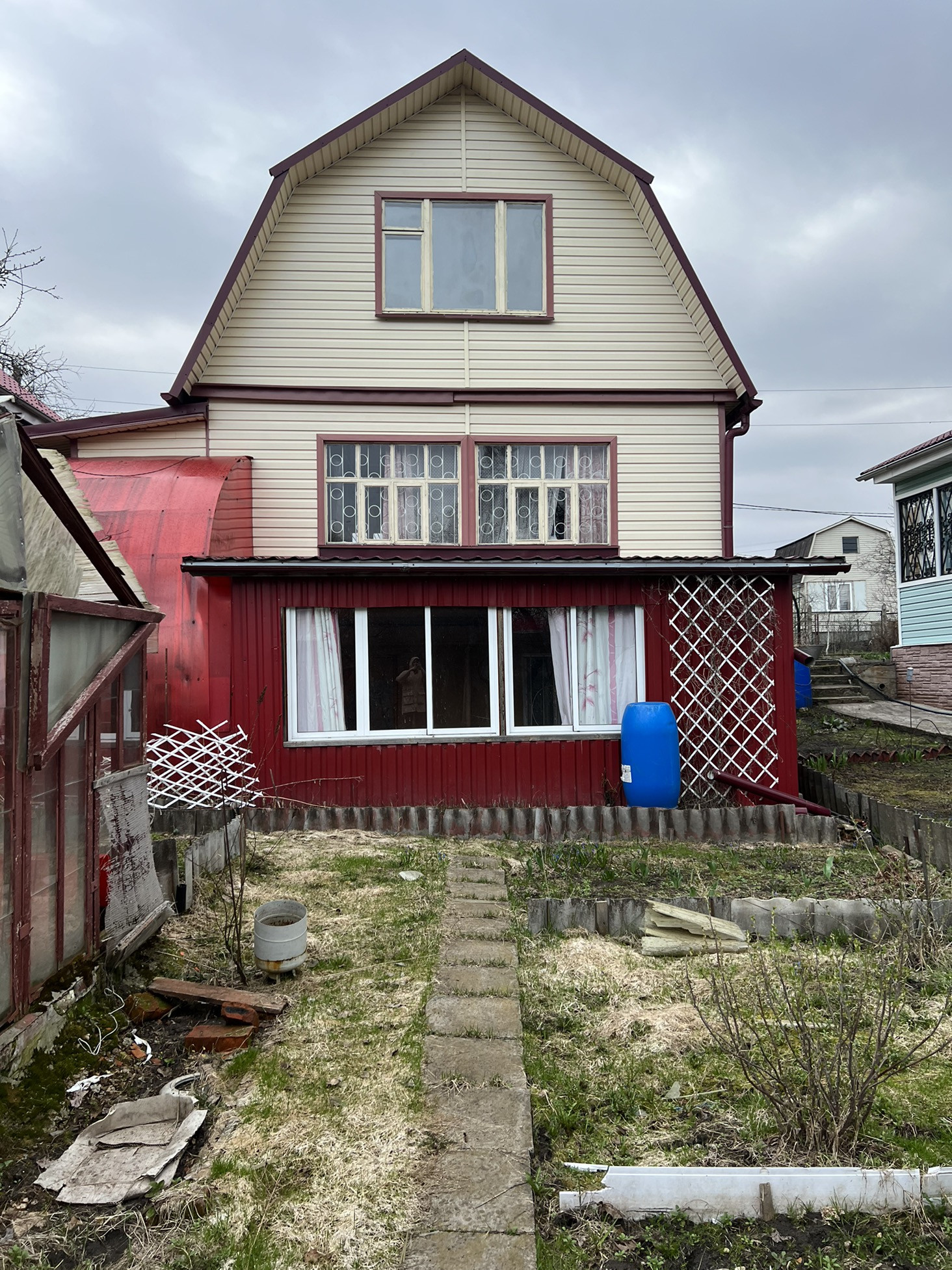 Садовый дом на участке 6 соток. Электричество 3 фазы, вода. Участок находится  в СНТ строитель, на берегу Оки,недалеко от Серпухова. СНТ охраняемый. Участок выходит на реку Скнига, в половодье не поддапливает, высокий берег. В 5 минутах песчаный пляж Оки. Дом 60кв.м. На первом этаже 2 комнаты, второй этаж мансардный. Есть хороший подвал. Электричка в 10-15 минутах пешком. Сейчас расположение на карте указано неверно, поддержка домклика не отвечает почему. Участок со стороны Подмоклово.