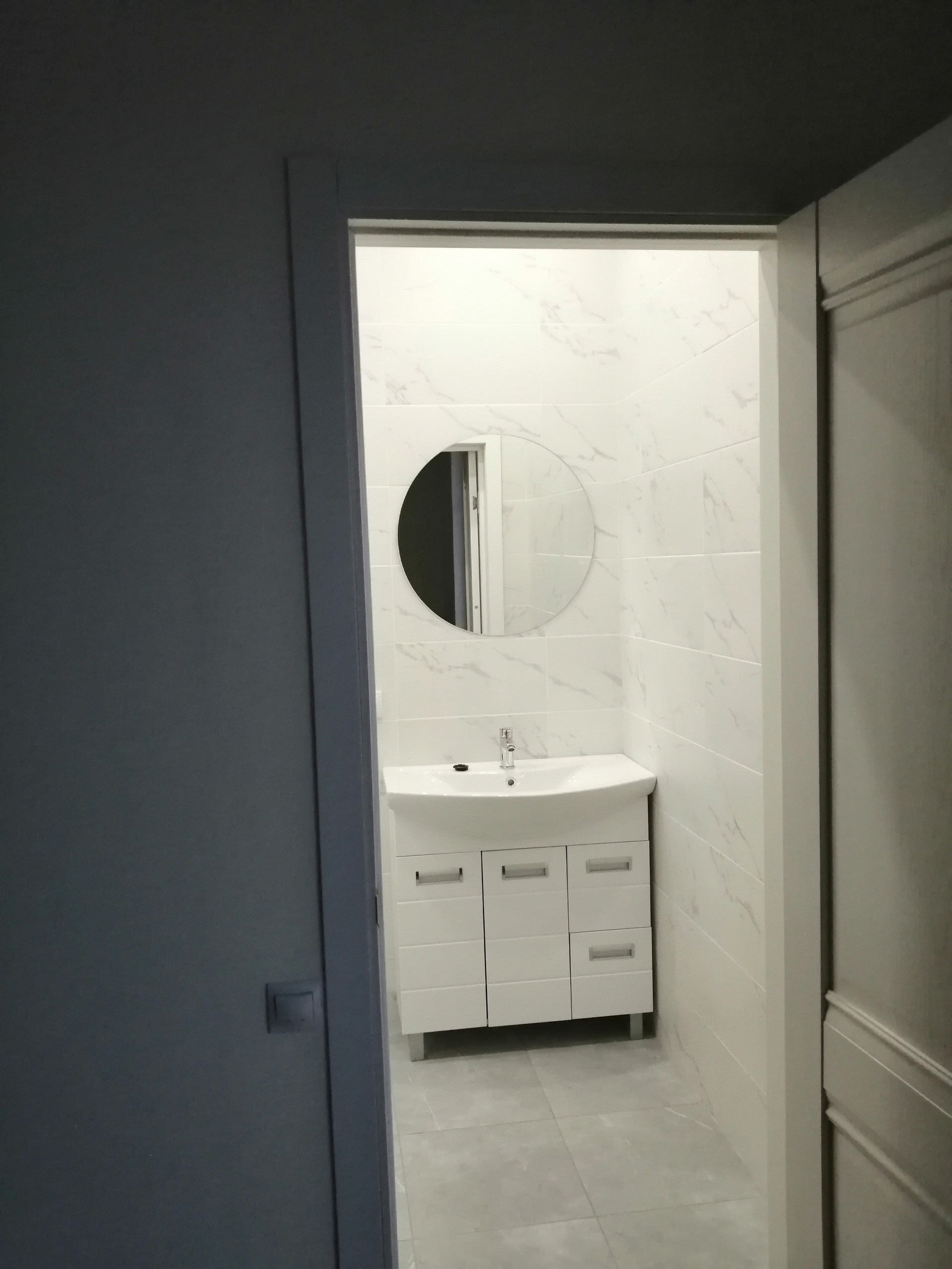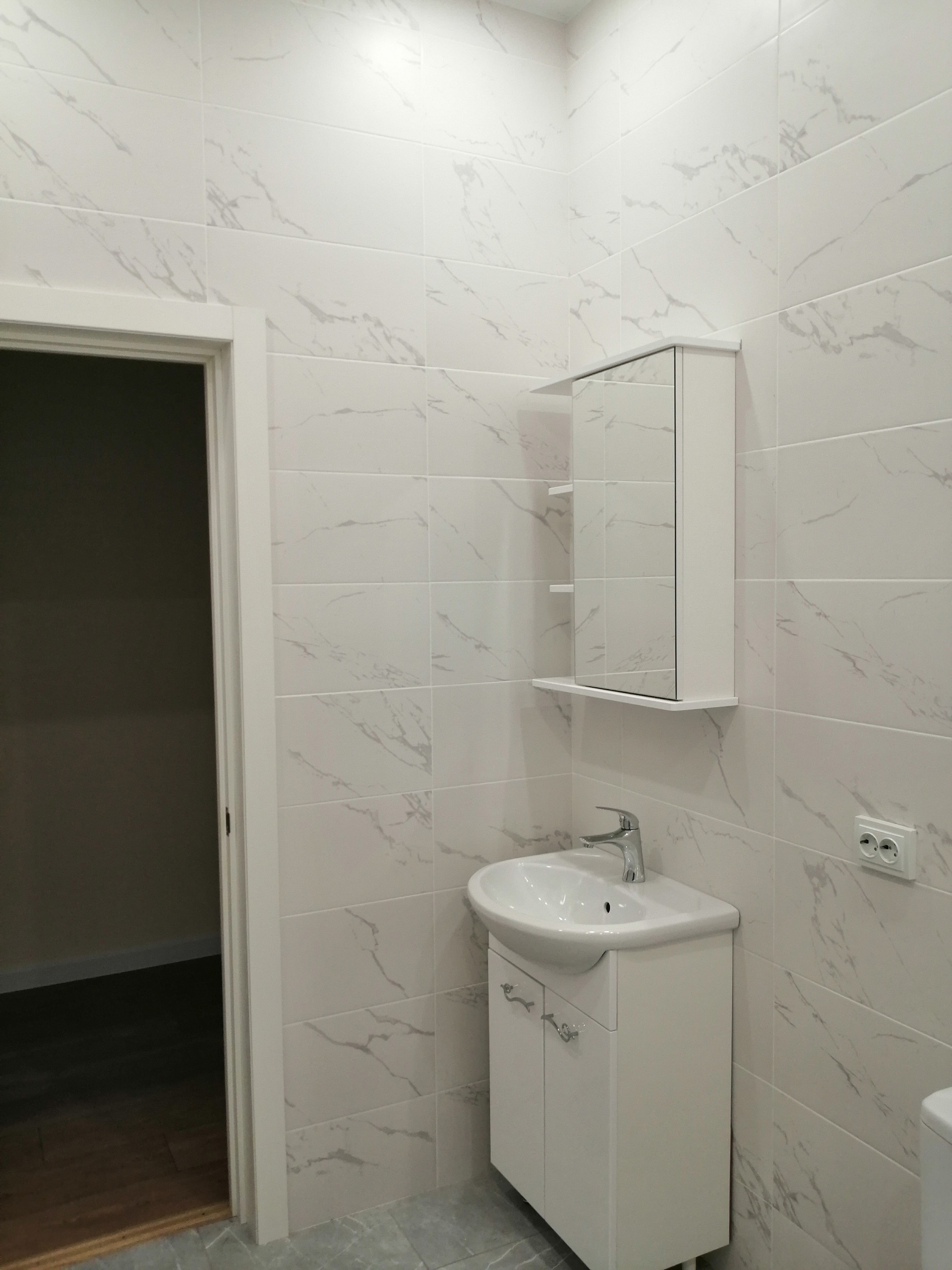 В сан узлах, на полу плитка , тёплый пол