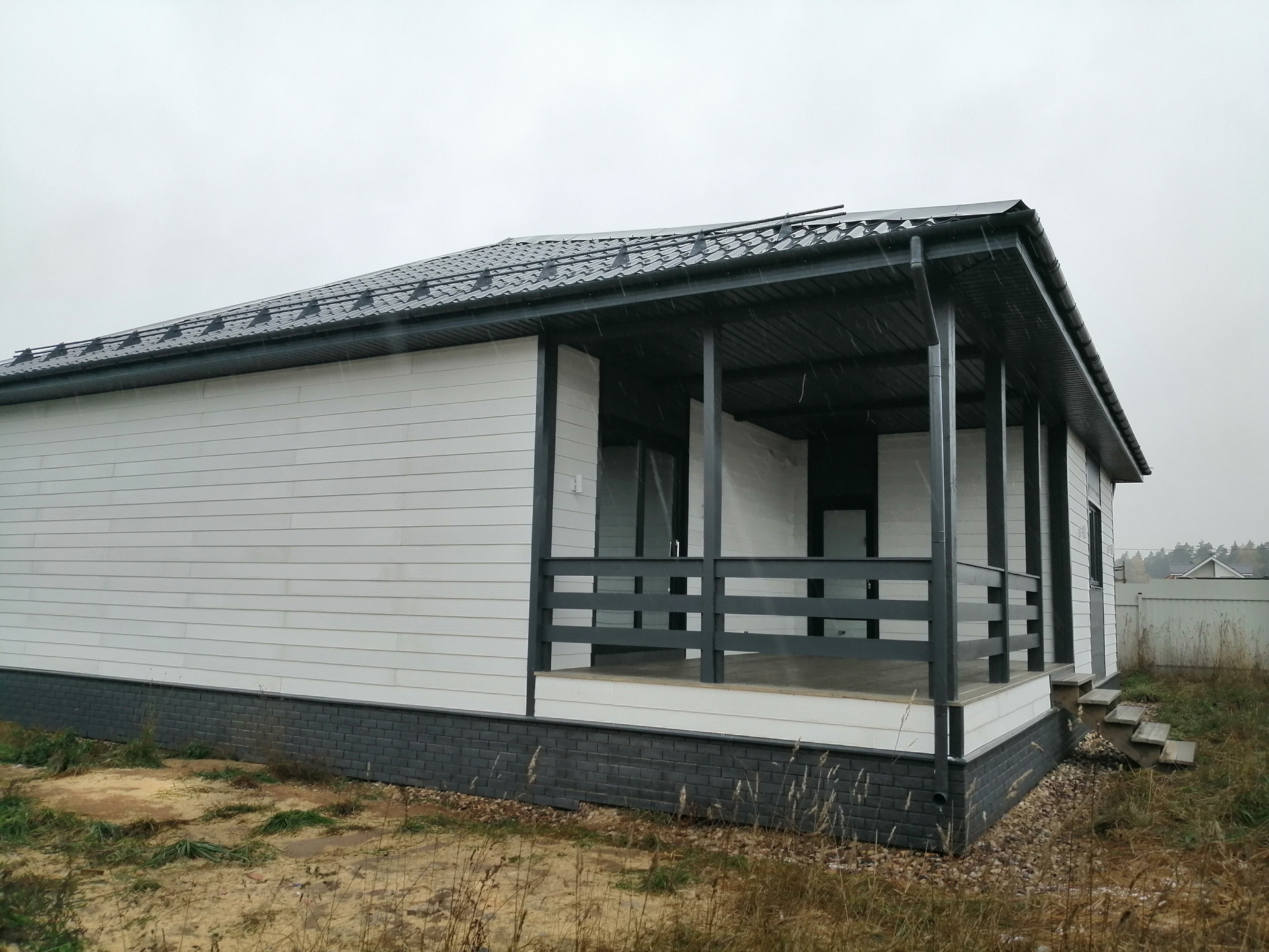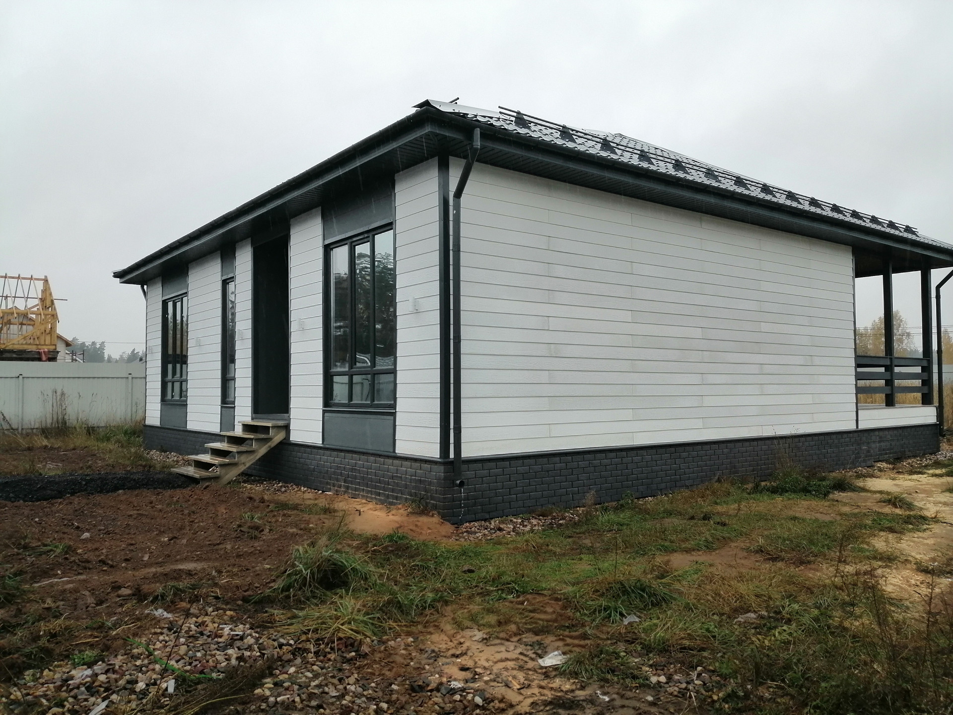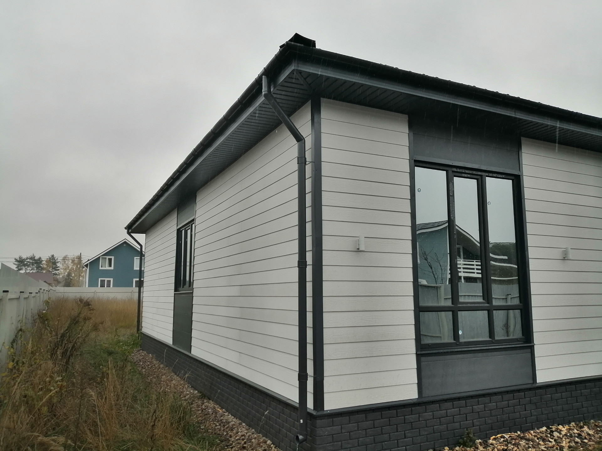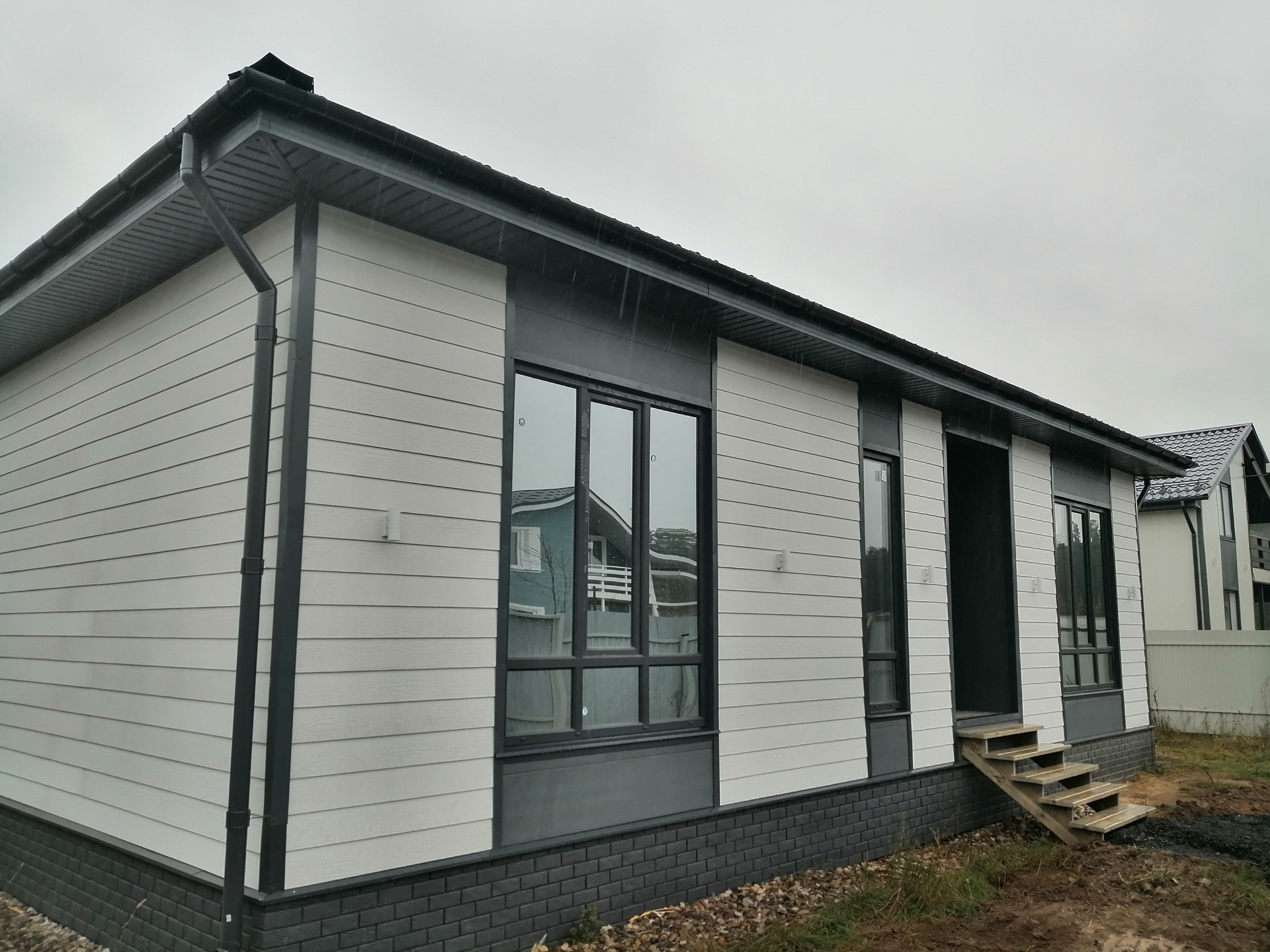 Наружная отделка - фиброцементная плита - современный, долговечный, и прочный материал, не требует дополнительного ухода.