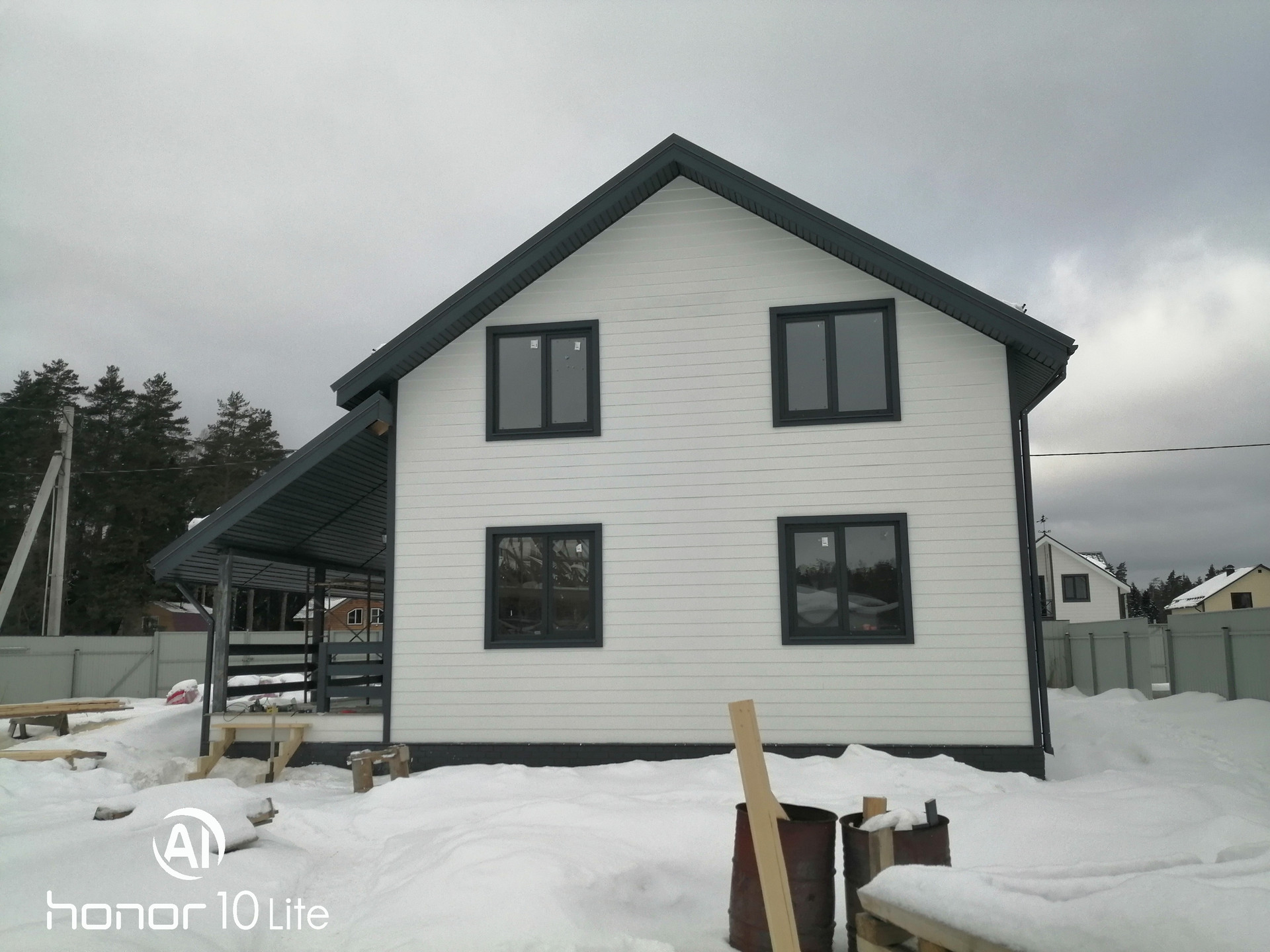 Наружная отделка - фиброцементная плита - современный, долговечный, и прочный материал, не требует дополнительного ухода.