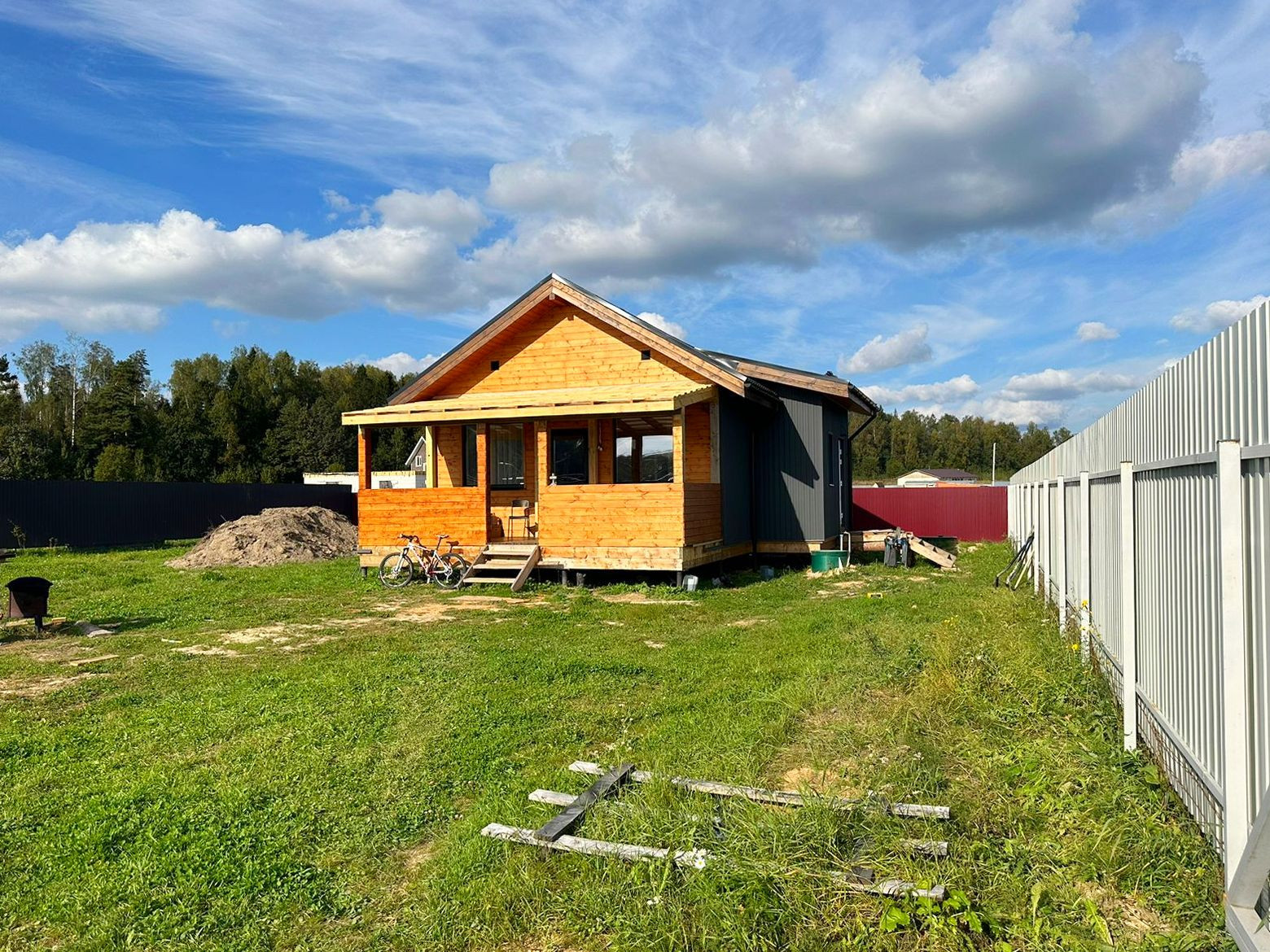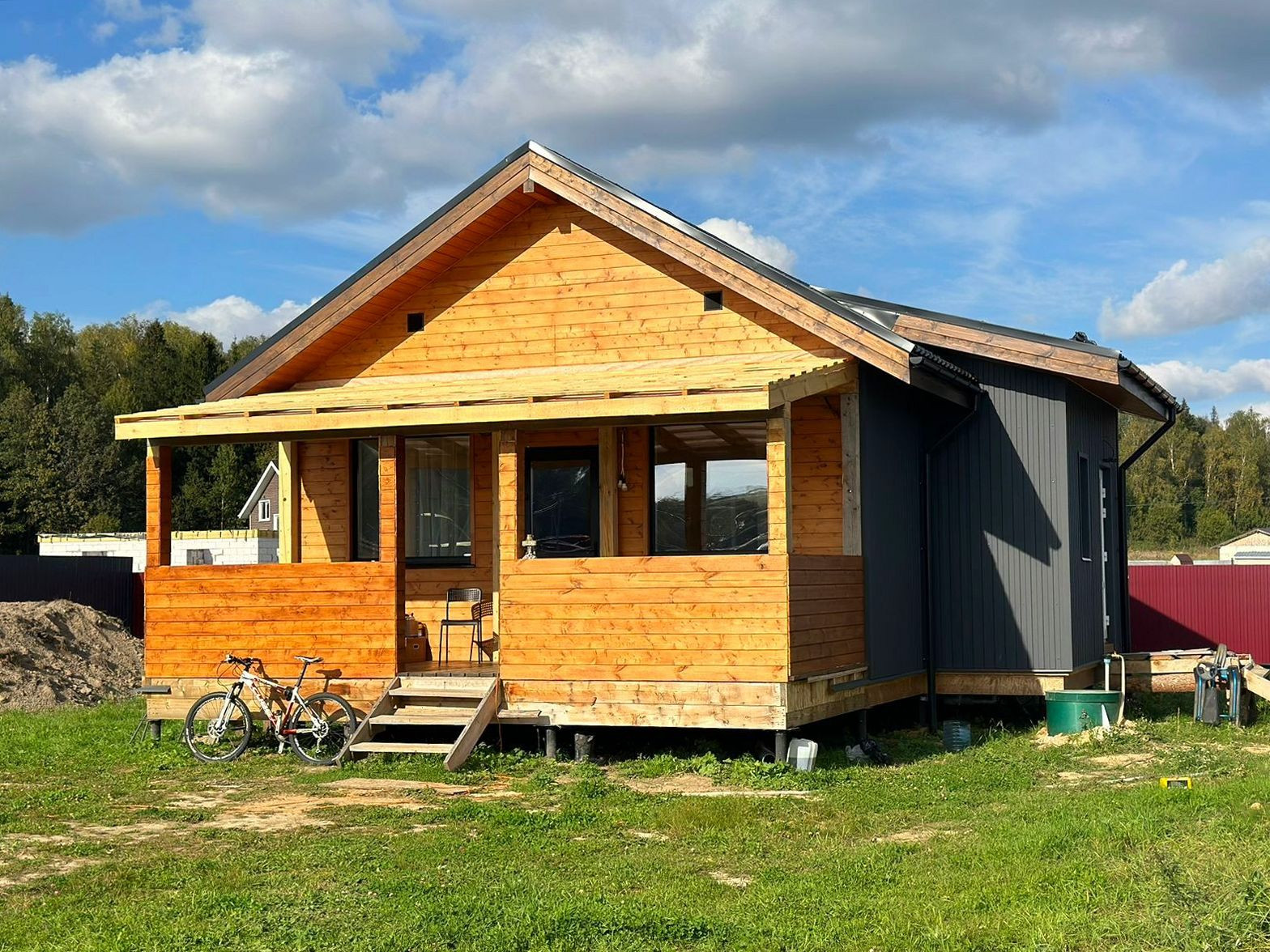 Общая площадь 78, по внутреннему объему 60. Свайный фундамент, утепление - стены 150, пол потолок 200. Есть дополнительный выход на чердак. Скважина 36 метров, система фильтрации, кессон, септик - Евролос на 5 человек. Бойлер на 80 литров (3 человека выдерживает подряд). Автоматические ворота. Бытовка, уличный туалет, залита площадка под въездную группу. Усиленный стеклопакет, двери с терм разрывом и толстым профилем. Теплый пол, Стяжка 7 см. котел на 6 кВт.