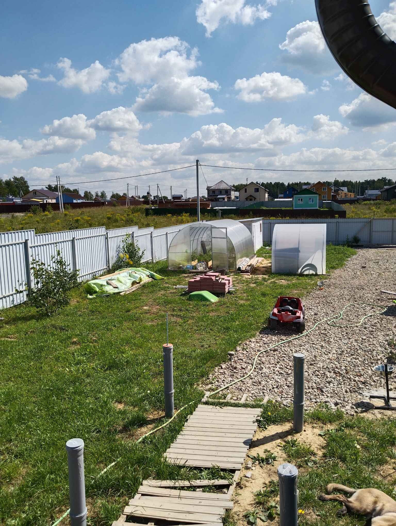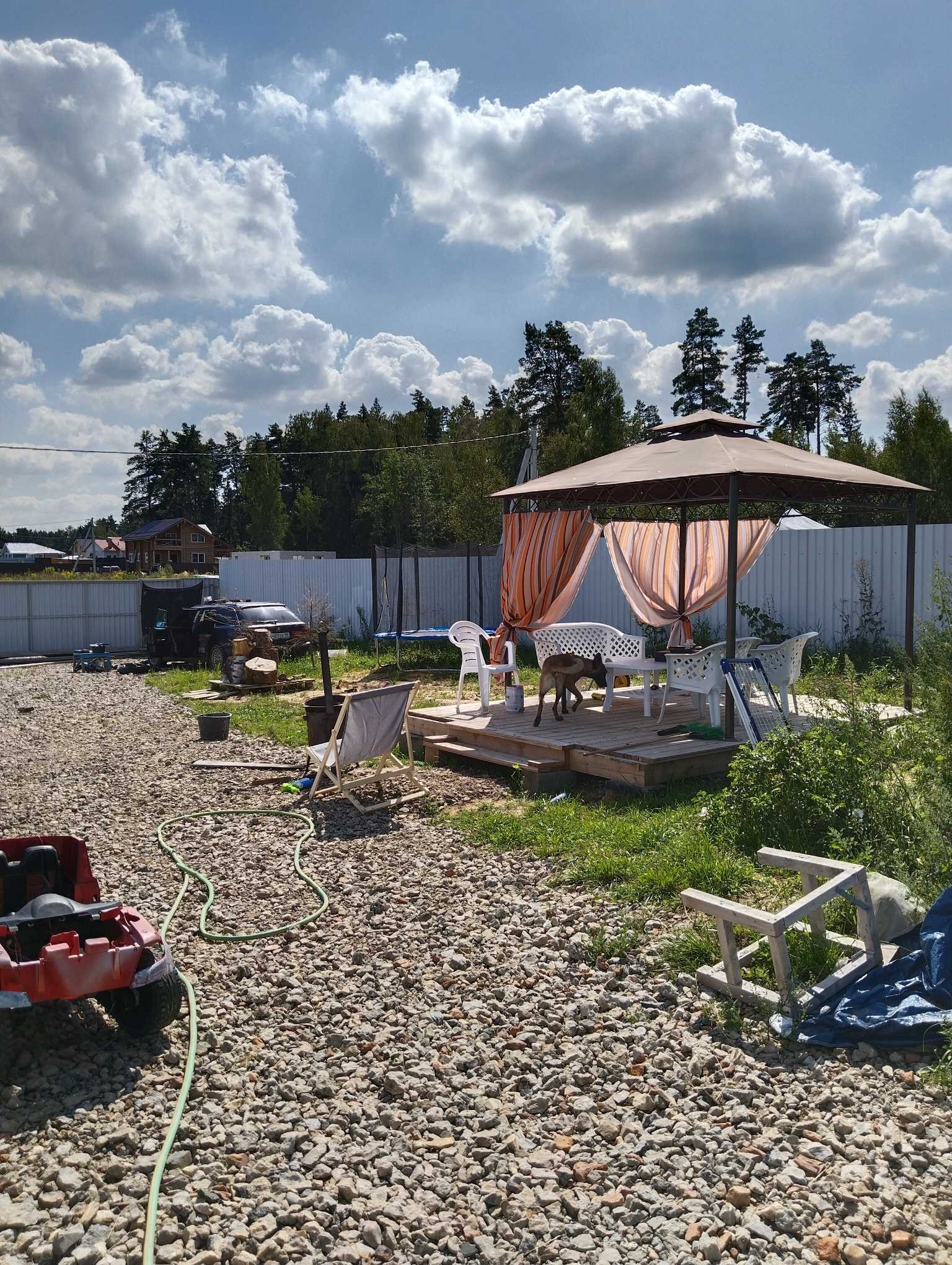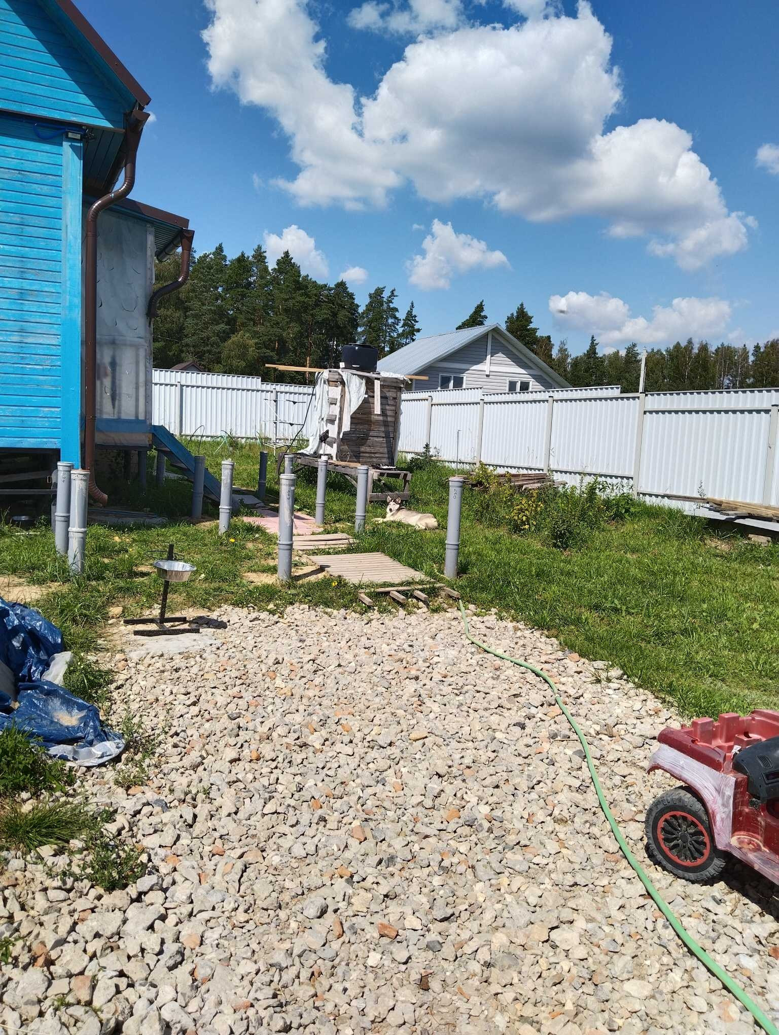 На участке теплица ,шатер ,батут ,дорога засыпанная щебнем ,ЛОС,скважина обустроенная ,сделаны сваи железо-бетонные для строительства большого тамбура и терассы .В доме можно прописаться и жить .кухня и техника остается новым жильцам .