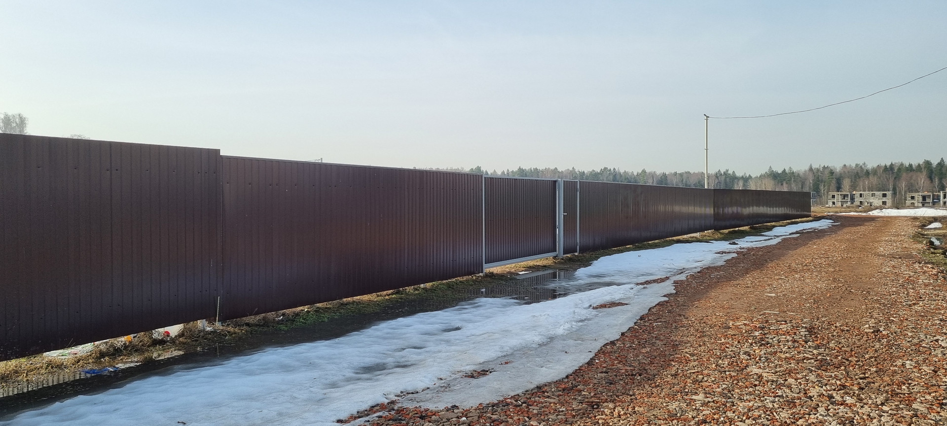 Участок правильной формы, выровнен, готов к постройке жилого дома, огорожен забором, калитка, откатные ворота. Электричество 15 квт на участке. Круглогодичный подъезд.