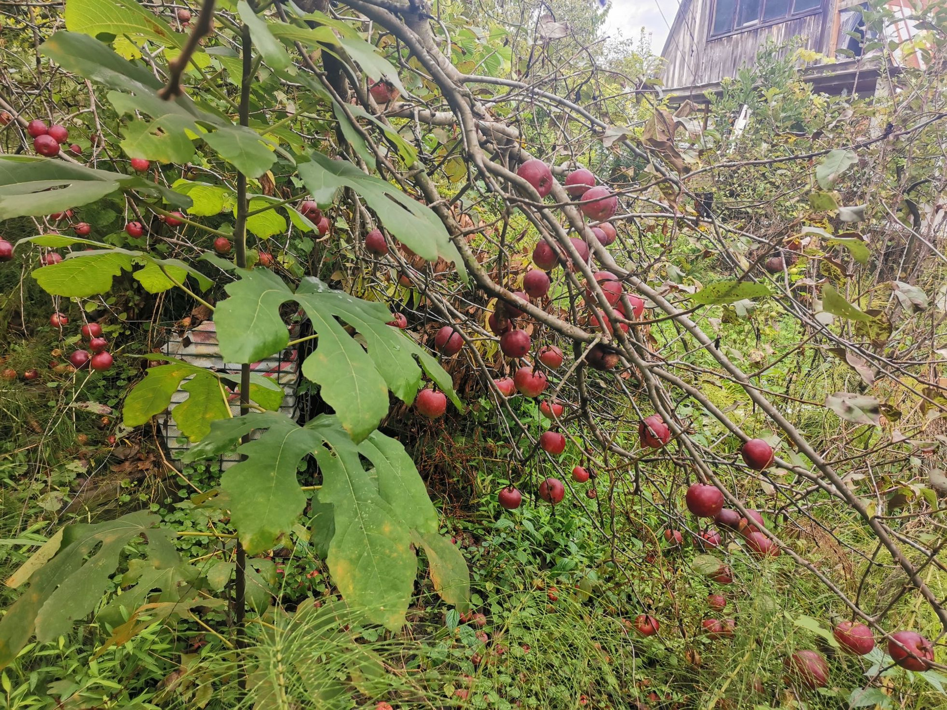 Участок огорожен забором. На территории фруктовый сад.