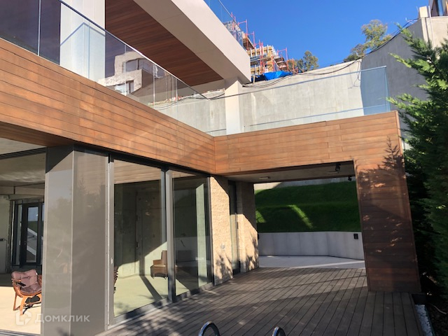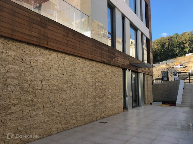 В отделке фасада использовались итальянские материалы премиум класса, керамогранит, бразильское дерево и натуральный камень Доломит.
