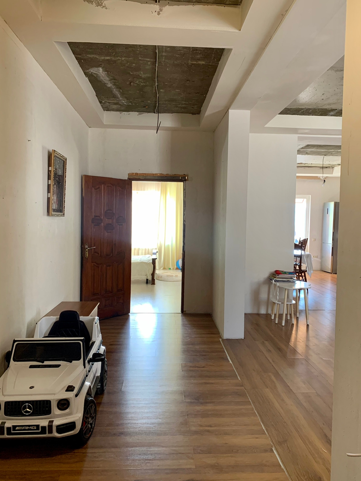 Дом имеет удачную планировку: на первом этаже 2 квартиры по 50 кв.м. с отделкой, теплые полы, укомплектованы мебелью, под сдачу в аренду (готовый бизнес). Второй этаж  без отделки- теплые полы, зал, кухня, спальня, санузел, третий этаж без отделки- 3 спальни, коридор.