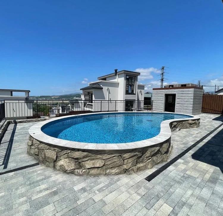 На прилегающей к дому территории благоустроены зоны для отдыха – беседка, бассейн с системой подогрева.