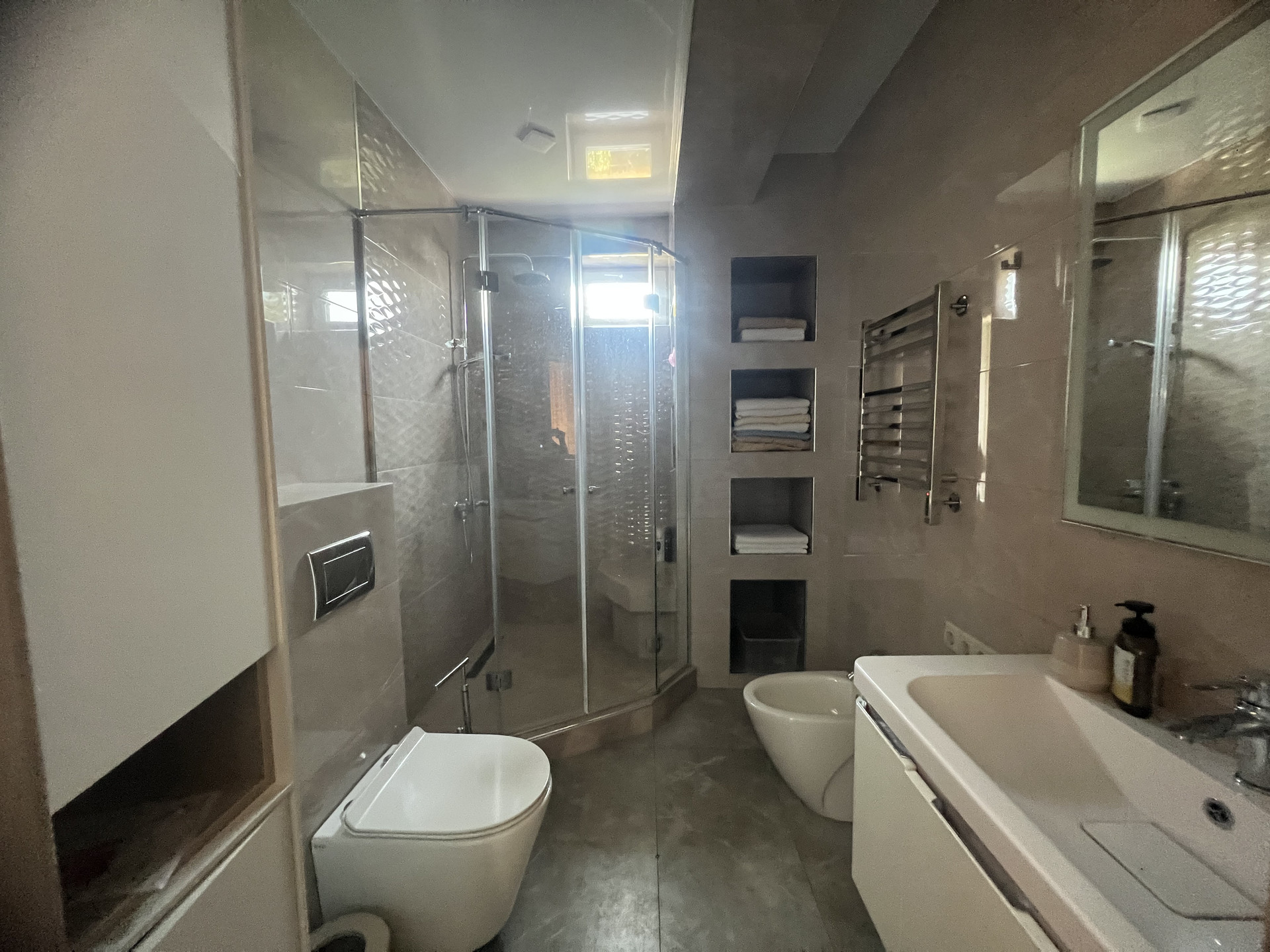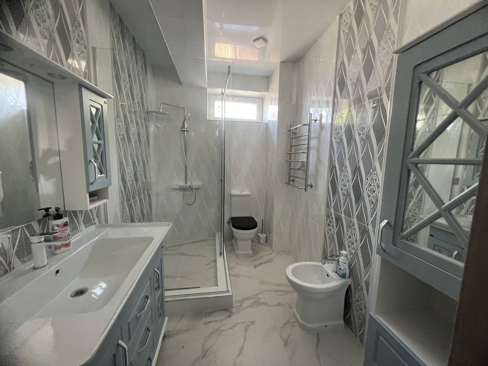 Архитектурный ансамбль домов выполнен в лучших традициях южного гостеприимства. Планировочные решения позволяют использовать один из домов под мини отель. Там есть все необходимое для комфортного и безмятежного отдыха или постоянного проживания. Просторные светлые комнаты с выходом на террасу и видом на море, собственный санузел, кондиционер, тёплый пол по всему дому. Просторная кухня гостиная с обеденной зоной и выходом на террасу, кладовая. На первом этаже расположена сауна , большая душевая и комната отдыха. Есть так же бильярдный зал. В цокольной части дома (куда можно попасть из дома, не выходя на улицу ,там же расположены кладовые помещения и прачечная.