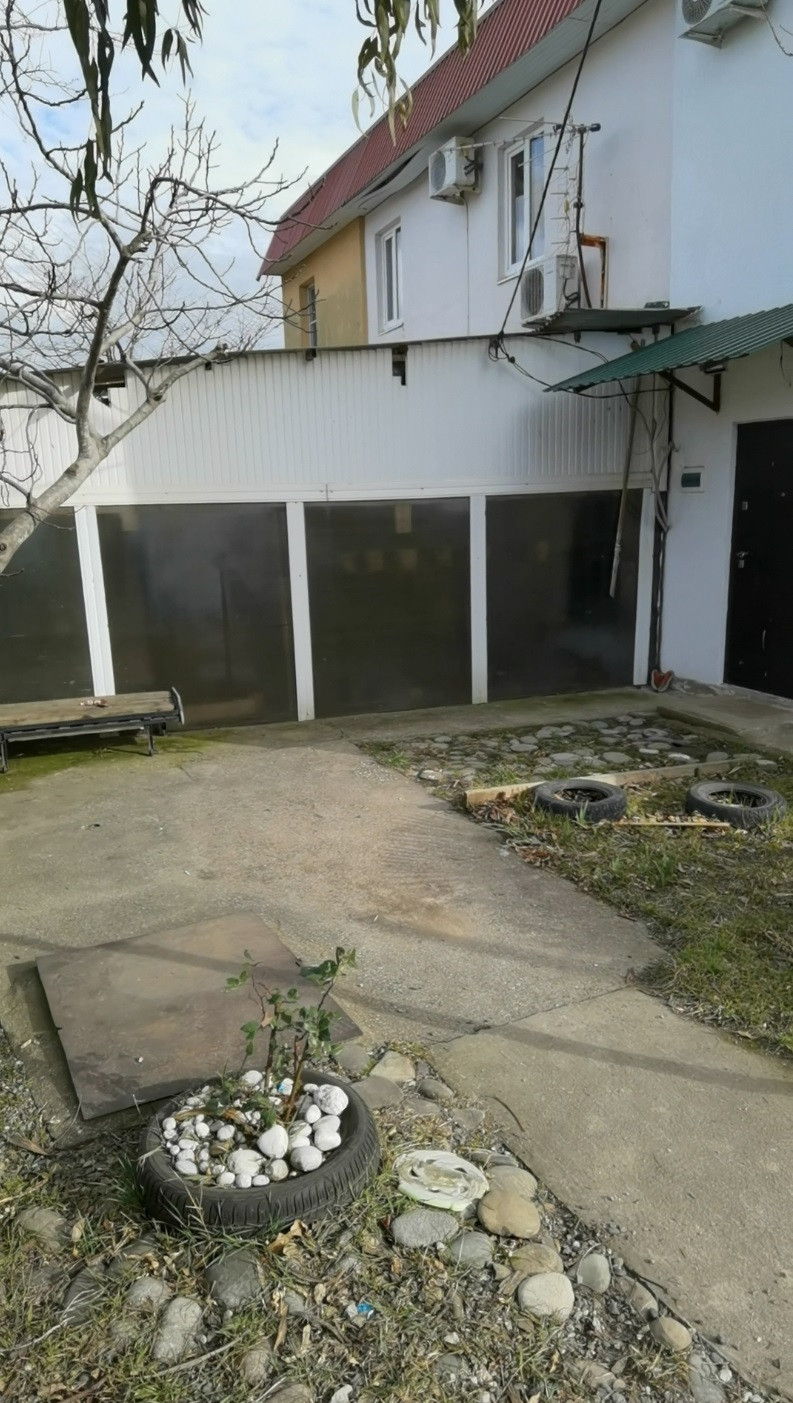 Дом поделен на 3 части, этот таунхаус с самым выгодным расположением, на солнечной стороне. На улице зона для отдыха, парковка на 1 автомобиль, возможно расширение на 2 машиноместа. Гостевая парковка у дома. По границе с соседом - сад с вечнозелеными фейхоа.
