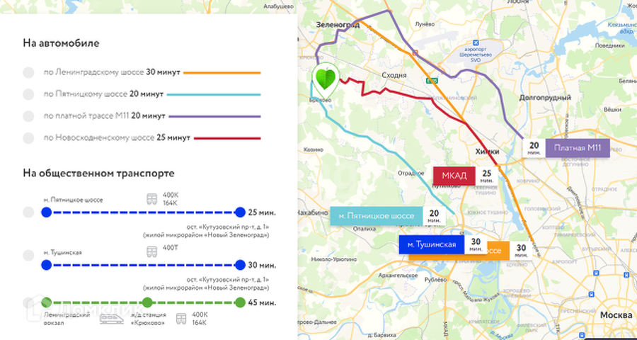 О ЛОКАЦИИ: Удобная транспортная доступность: остановка общественного транспорта в двух минутах ходьбы от дома: автобус до станции Крюково 15 минут, автобус 400Т - 40 - 50 минут до м. Пятницкое шоссе и м. Тушинская. В столице реализуется проект московских центральных диаметров, или наземного метро. Он включает в себя МЦД-3 «Зеленоград-Раменское».Для жителей проекта «Новый Зеленоград» наземное метро станет ещё одним удобным способом добраться в центр Москвы, так как станция находится всего в 15 минутах езды на общественном транспорте.