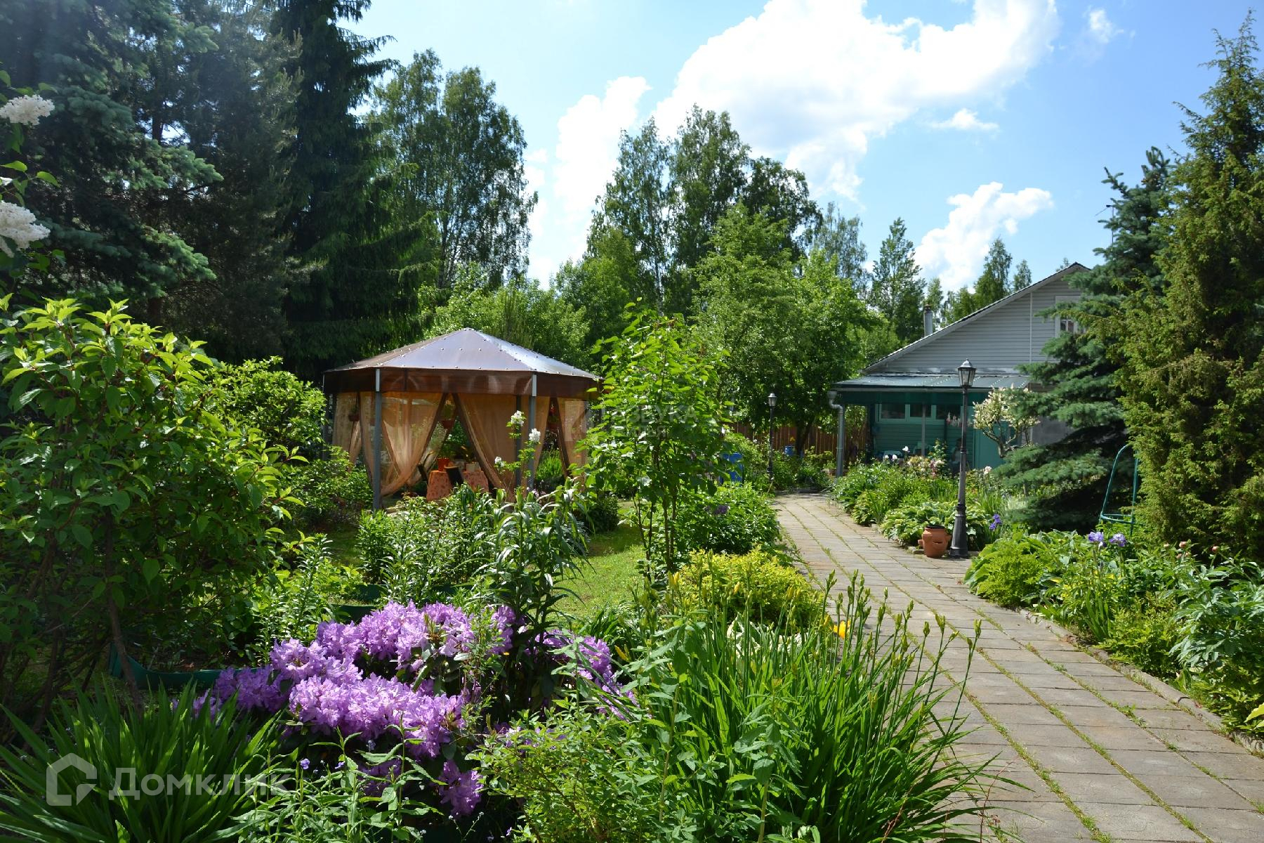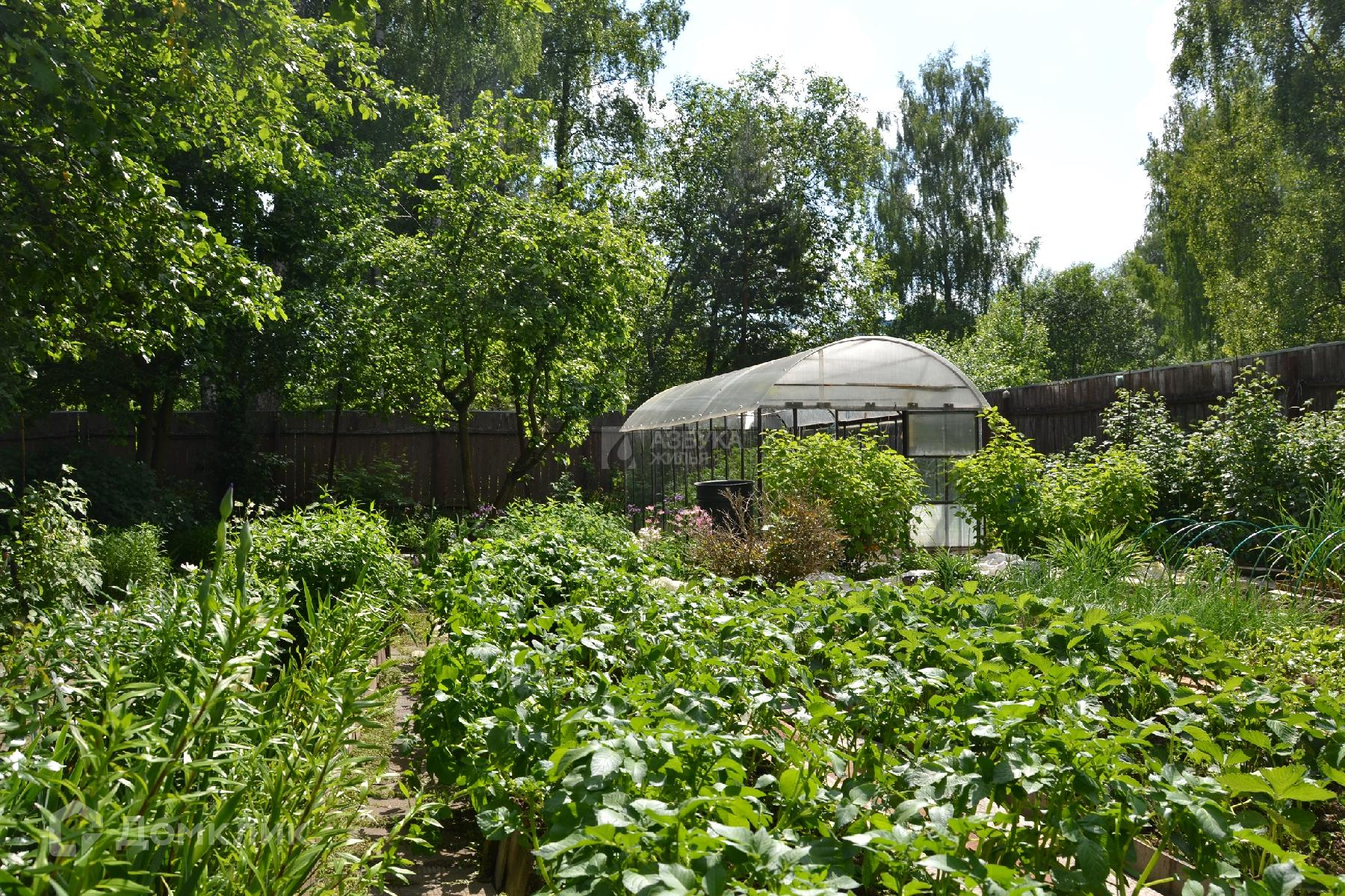 Участок ухоженный, много деревьев, кустарники, цветы, небольшой огород, теплица, беседка, качели.