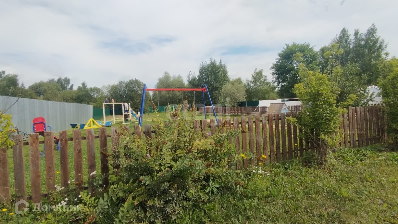Металический забор с воротами, установлен по всему периметру участка.
