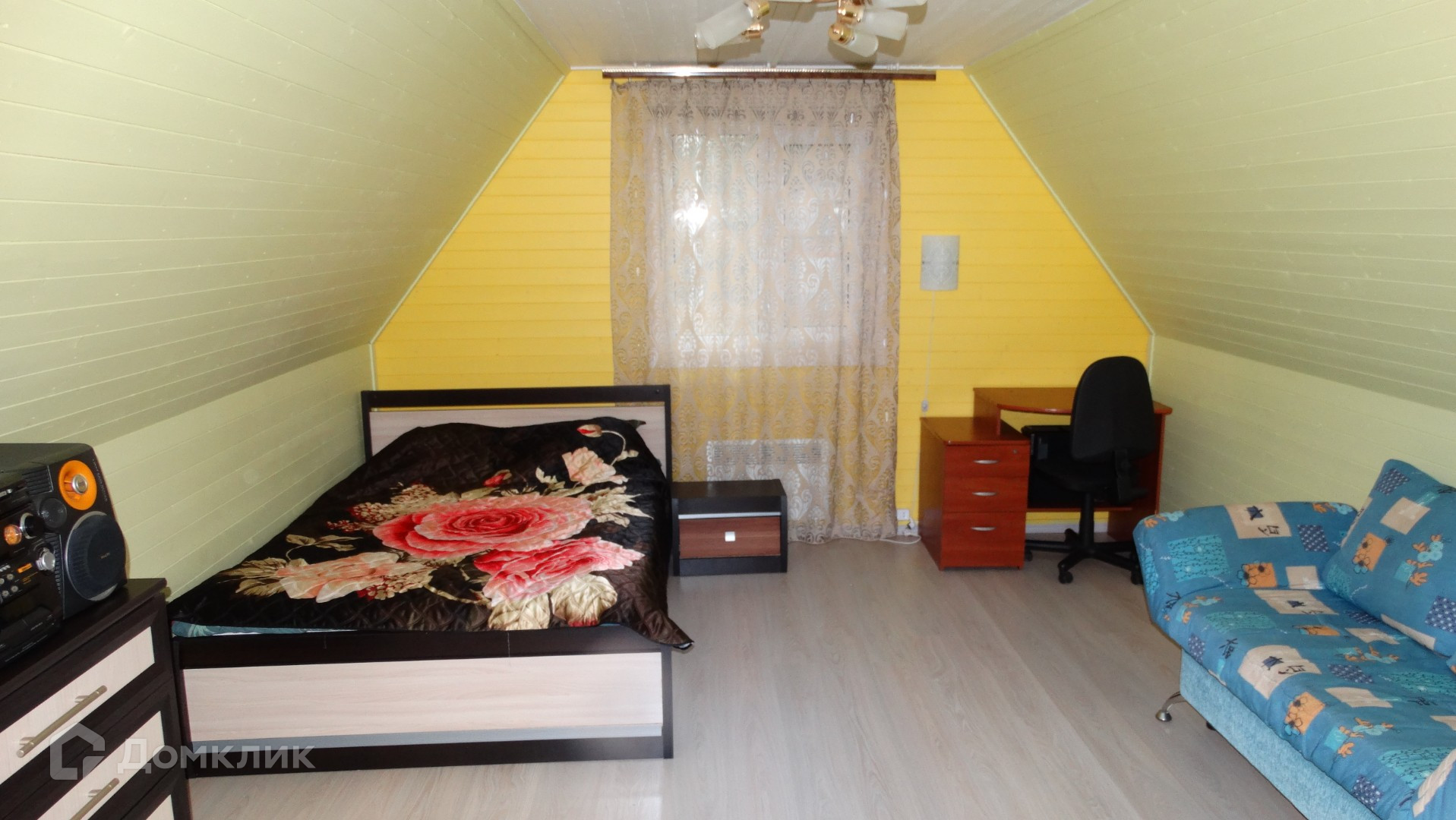 Дом щитовой, утепление стен и пола 20см, крыша металлочерепица. Сделан хороший ремонт.