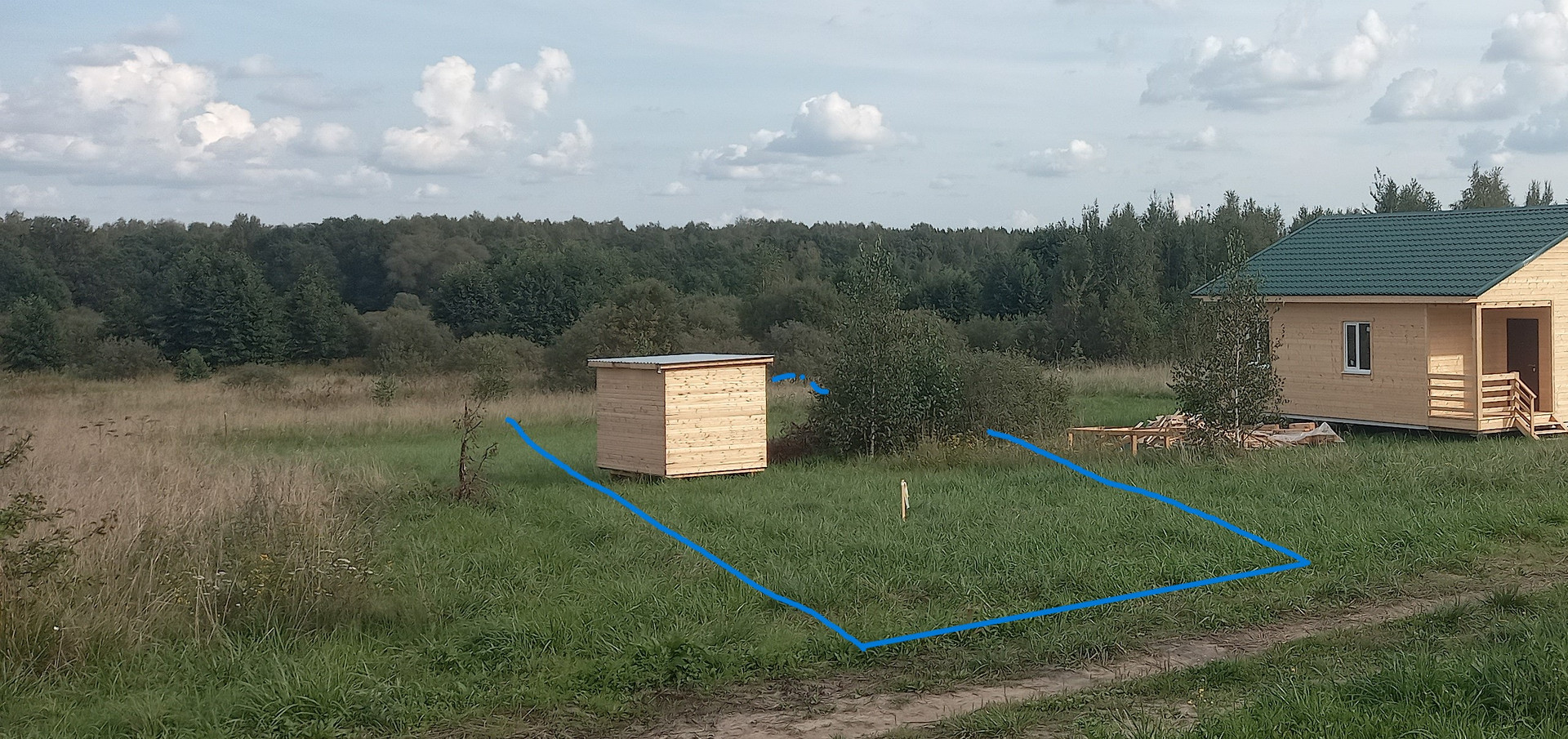 Участок не широкий: по фасаду - 13 метров. Подойдет для постройки дом с фасадом до 7 метров.