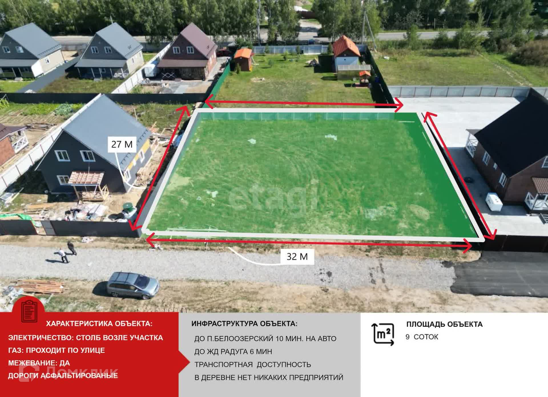 Станьте обладателем идеального участка в активно развивающейся деревне! Предлагаем вам уникальную возможность приобрести самую привлекательную землю в живописной местности, где природа обходит вас своей чистотой и свежестью. Наш участок обладает множеством уникальных преимуществ, которые сделают вашу жизнь здесь комфортной и гармоничной. Стратегическое расположение: участок находится всего в 10 минутах на автомобиле от п. Белоозерский и 6 минутах до ж/д станции Радуга. Это идеальное сочетание спокойствия деревенской жизни с удобством городской транспортной доступности. Комфортные условия: участок огорожен с трех сторон, что обеспечивает вам необходимую приватность и безопасность. Удобный доступ к участку по новой асфальтированной дороге делает его доступным в любую погоду. Отсутствие индустриального шума: в этой деревне нет никаких предприятий, что гарантирует вам тишину и спокойствие. Здесь вы сможете наслаждаться пением птиц и звуковым фоном природы, не беспокоясь о промышленных выбросах и шуме. Чистый воздух и живописные пейзажи: каждый день, проведенный на этом участке, будет наполнен свежим воздухом и красотой природы. Завораживающие виды, зелёные леса и чистые водоемы создадут идеальные условия для отдыха и восстановления сил. Развивающаяся инфраструктура: деревня активно развивается, что обещает рост цен на землю и недвижимость в будущем. Это отличная инвестиционная возможность для вас! Транспортная доступность: регулярное автобусное сообщение обеспечивает ещё большую мобильность, позволяя без проблем добраться до важных точек региона. Не упустите свой шанс стать частью этой удивительно красивой местности! Сделайте шаг к мечте о собственном доме на природе, где каждый день будет приносить радость и умиротворение. Свяжитесь с нами сегодня, чтобы узнать подробности и записаться на просмотр!