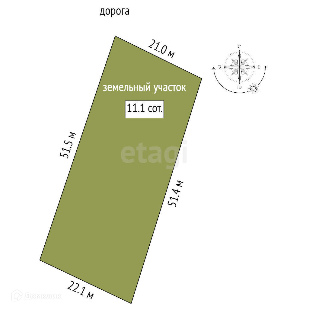 Площадь участка 11.1 сот.